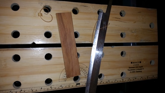 So hier dann die Versprochenen Bilder. Ich komme leider nur langsam voran aber es geht stetig weiter. Ich habe bisher die Osage Stücke geschnitten und geschliffen. Morgen werde ich das Kirschholz bearbeiten und hoffentlich sieht man Morgen schon ein (Zwischen)Ergebnis.