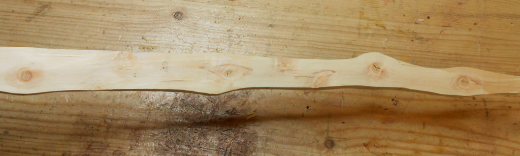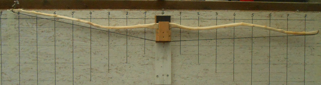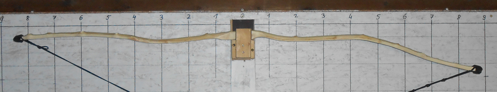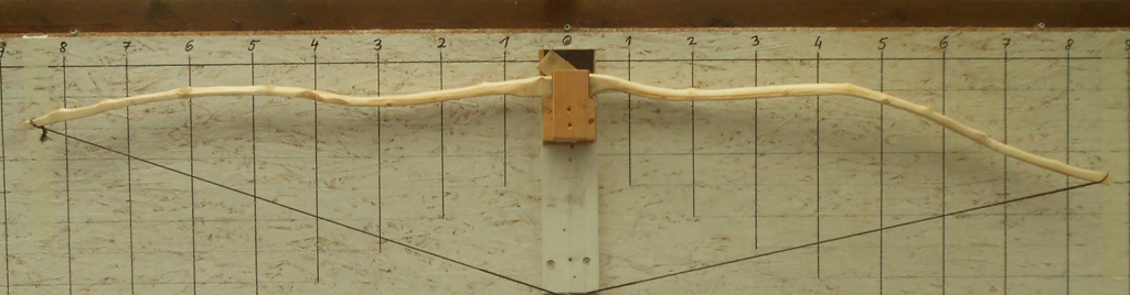 Heute bin ich angefangen schon mal ein bißchen am Weißdorn rumzubiegen, aber nur ein bißchen. Rechts ist der obere WA. Wo ich da so dran rumgeszogen hab, hab ich mir die Frage gestellt, ob es Sinn machen würde, das Ende vom oberen WA ein wenig zu flippen damit die Nocke ein wenig höher kommt und ich zumindest einen halbwegs schießbaren Bogen daraus bekomme. Ansonsten weiß ich im Moment ehrlich gesagt nicht so recht weiter, ich glaub ich muss mir noch so den einen oder anderen Gedanken dazu machen.