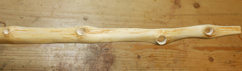 Hallo, also das einzige ausgebohrte Astloch, bei dem ich Bedenken habe, iss das linke auf dem Foto mit den 2 Löchern - da biste schon seeehr nah am Ast und hast die um den Ast laufenden Fasern durchtrennt - aber das iss jetzt nur ne Vermutung - hatte leider noch keinen Weißdorn in den Fingern