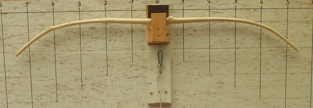Der Bogen zieht sich jetzt auch langsam ein wenig geschmeidiger. Das angepeilte Zuggewicht von ca. 35# ist noch locker zu halten, da er das momentan schon bei 17,5 " erreicht.