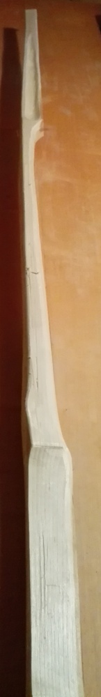 letzte Nacht habe ich angefangen meinen am 6.Januar geschnittenen Ulmenstave weiter zu bearbeiten. Es ist das erste Mal für mich, dass ich mit Ulme arbeite, musste feststellen, dass die Ziehklinge ganz schrecklich rupft, ansonsten ist das Holz im Vergleich zu Osage sehr leicht. Es ist ausserdem mein längster Bogen, den ich bisher gebaut habe, mit 199,5cm über alles. Ein paar Tage muss er jetzt noch trocknen, dann geht es ans Tillern. Gewicht aktuell noch bei 649 Gramm. Zielzuggewicht 55-60#.