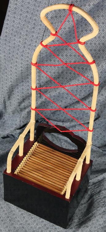 mit der fertig geflochtenen Kordel nun den Tragrahmen verspannen. Fortzetzung folgt.