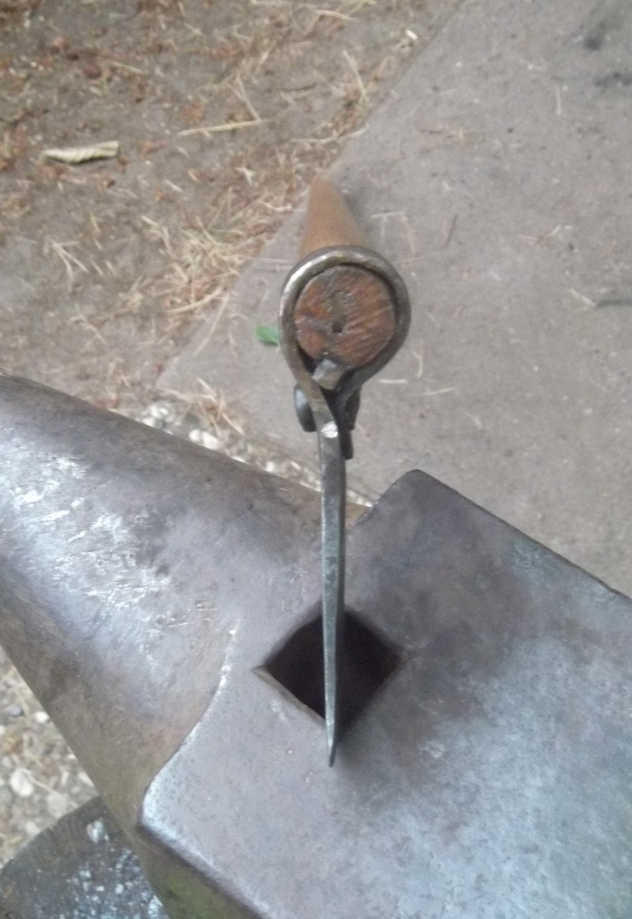 Das mit dem Loch für den Stiel ist vollkommen korrekt, das ist nicht ganz da gelbe vom Ei. Aber ich lege keinen so großen Anspruch auf die Originalität. Wenn ich da je mal richtig schmieden werde, wird auf jeden Fall rund wie die originalen.