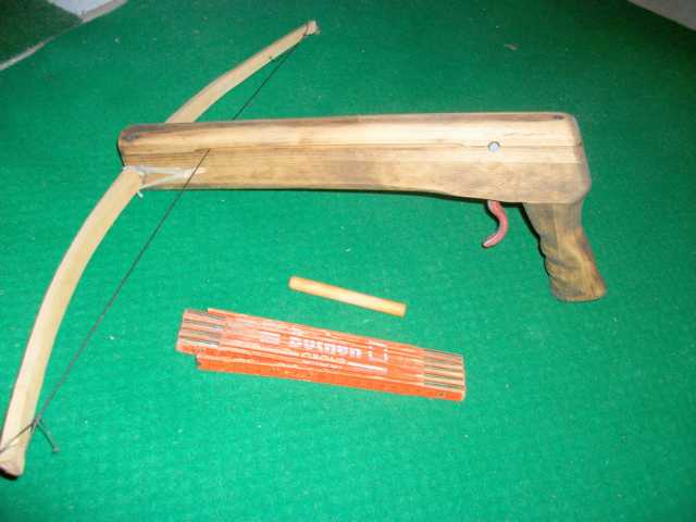 Den Schaft noch ein wenig schöner gemacht, einen viel stärkeren Bogen drauf, dann ist das wirklich ein schönes Spielzeug.