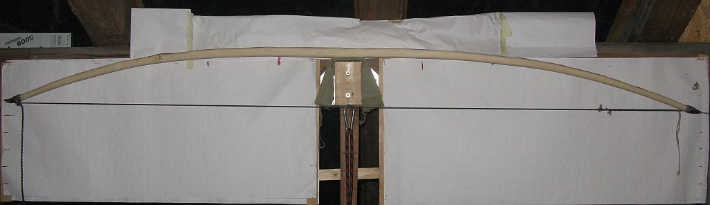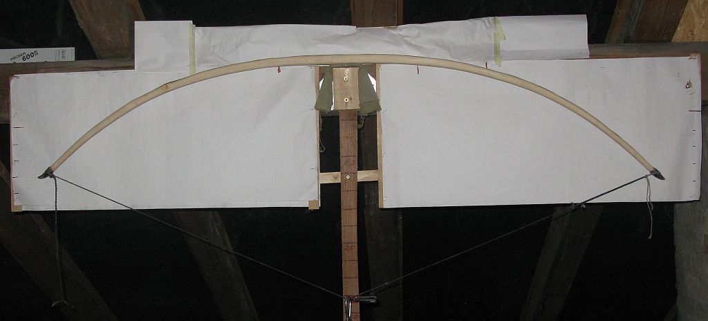 Bei dem Zuggewicht kann ich noch nichts genaues sagen, da der Bogen noch nicht auf der optimalen Standhöhe von 6"=15cm vom Bogenbauch aus gemessen ist.