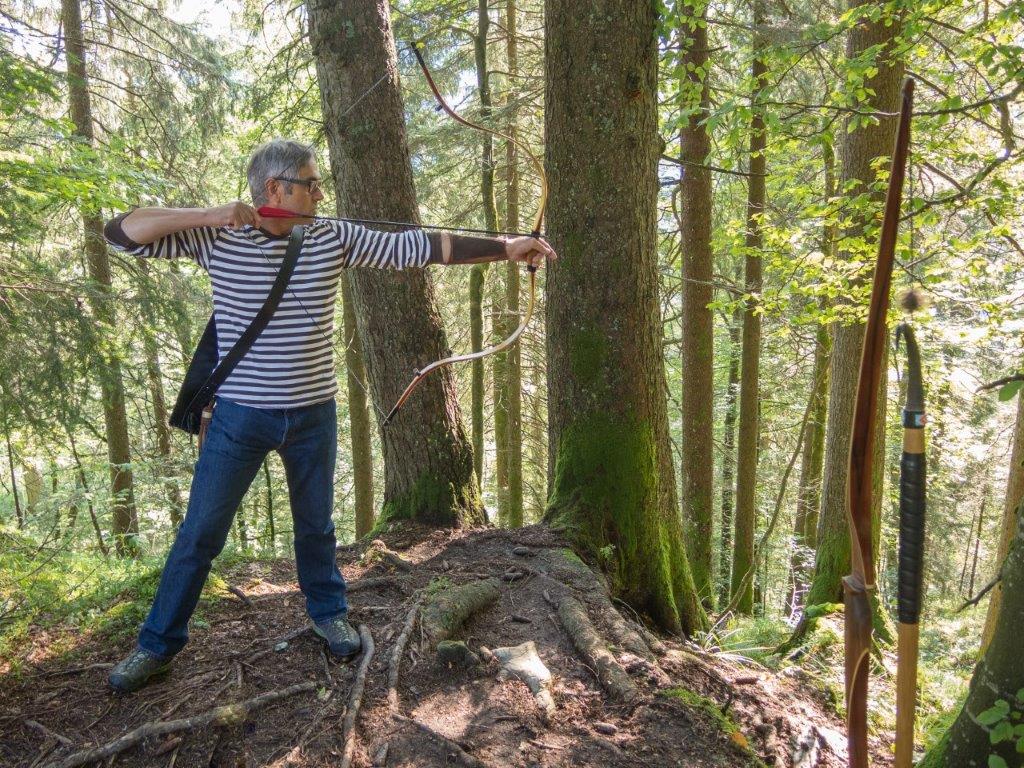 Für so einen Schiessstil sind Europäische Holzbögen eigentlich nicht geeignet.