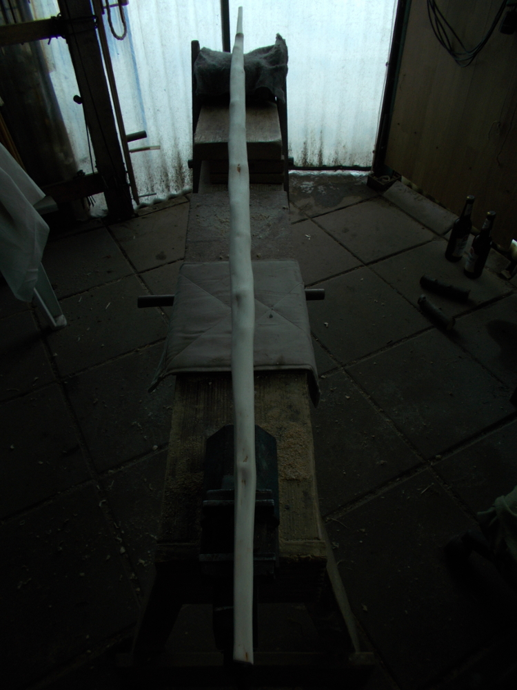 Heute mal ein wenig mit meinem Birkenprügel rumgemacht:den Rücken von Rindenresten befreit,Bearbeitungsspuren beseitigt,