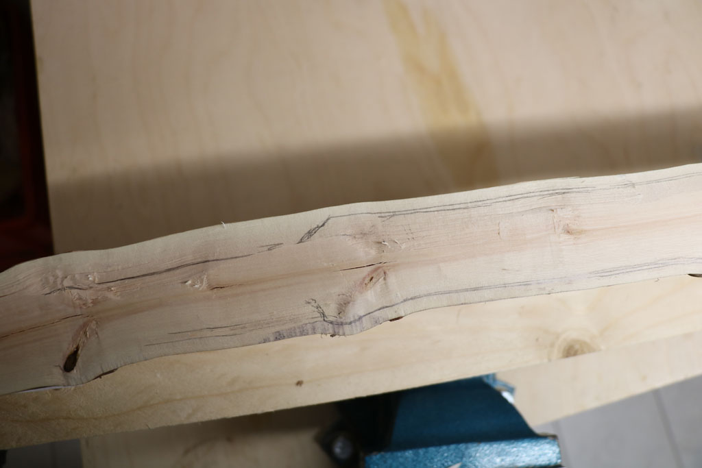 im dem Ziehmesser bearbeitet. Er ist noch sehr feucht.