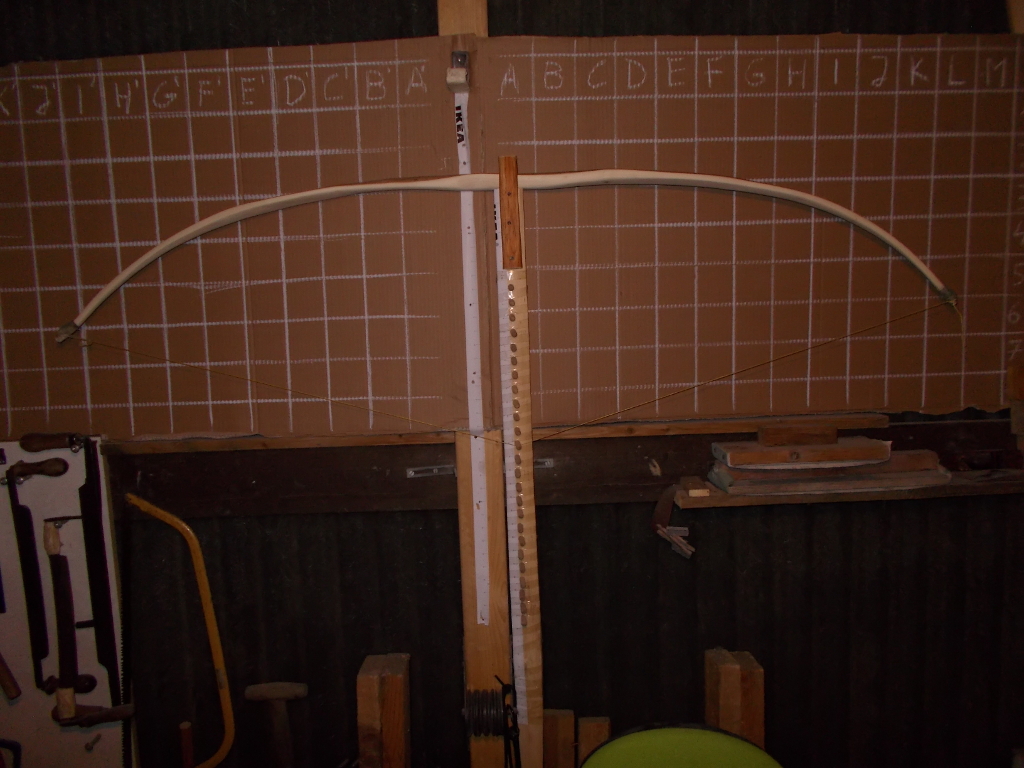 Und so ab Standhöhefoto geraten, sieht es aus als hätte der Bogen noch Biegepotenzial zur Mitte hin, so dass die Biegezone, auch nach einer eventuellen Kürzung, immer noch lang genug sein könnte.....