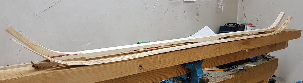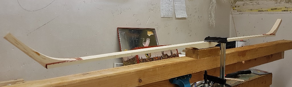 Heute ging es weiter. Die Bogenform ausgesägt und zurecht geraspelt, den Griffbereich angepasst (schmaler und dünner gemacht) und den Siyahs die entgültige Form gegeben. Alle Kanten mit der Ziehklinge abgerundet.