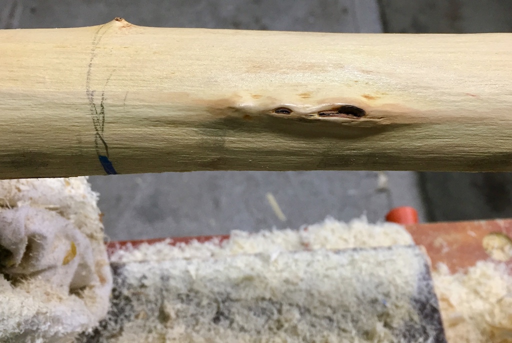 Mittlerweile hab Ich die Sehnenlage mit trockener Hitze im Griffbereich korrigiert. Ich hatte keine Ahnung ob das so bei dem Holz funktioniert, hat aber gut geklappt.