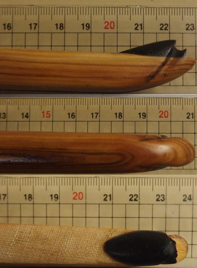 wo ich gerade der Roteiche aus dem Sap eine letzte Schicht Hartöl verpasse, wollte ich das bei der Eibe auch machen, die hat bis jetzt nur Leinölfirnis gesehen. Und dabei habe ich gesehen, dass doch glatt die Spitze eines Tip overlays aus Horn abgeplatzt ist. Die muss ich also erneuern. Meine Tip overlays wirken sowieso etwas zu klobig. Die Tips am Ende sind 12 mm breit und eher noch etwas dicker. Was schätzt ihr ein, bei ca 68# gehen da auch schmälere Tips so z.b. 10mm ohne dass die Biegung am Ende deutlich zunimmt? Oder wäre das Kaffeesatz lesen?
