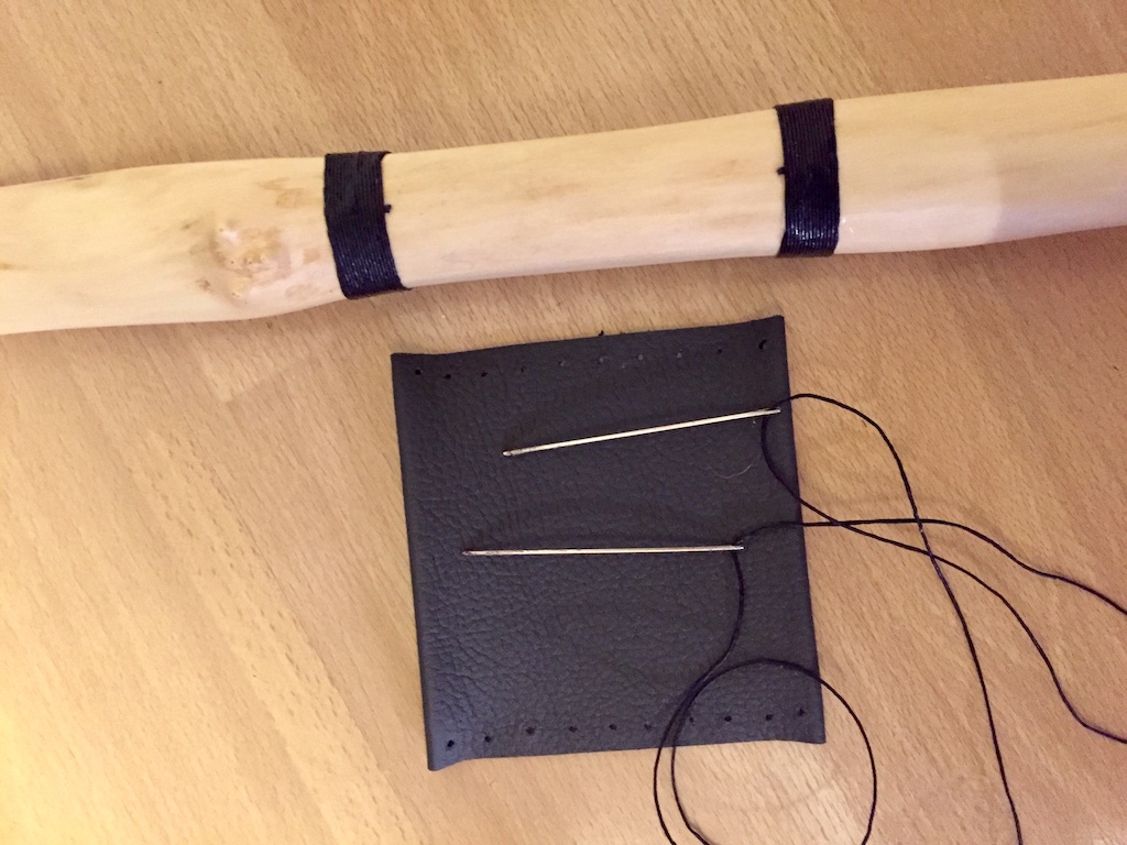 Der Holler ist fertig. Ich habe noch etwas an den Wurfarmen gekratzt und bin bei 37#@28" gelandet. Mit den ersten Testpfeilen habe ich gleich einen "Robin Hood" geschossen. Ich werte das mal als gutes Omen. Nach dem Finish mit Holzöl und Hartwachs kam heute das Griffleder drauf. Als Pfeilanlage habe ich eine Wicklung gemacht. Das Griffleder wurde mit Ponal Blau zusätzlich geklebt, damit nichts verrutscht.