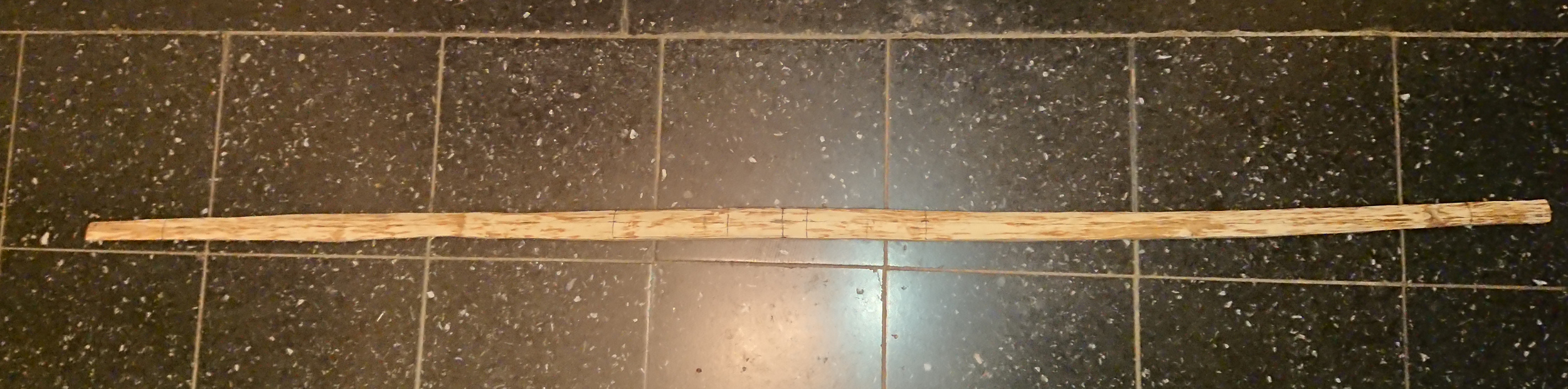 Ich habe heute wieder einen Haufen Späne gemacht und den Stave um einiges verschlankt. Die Gammelstelle ist weg, bislang ist nichts gerissen oder sonst irgendwas passiert.