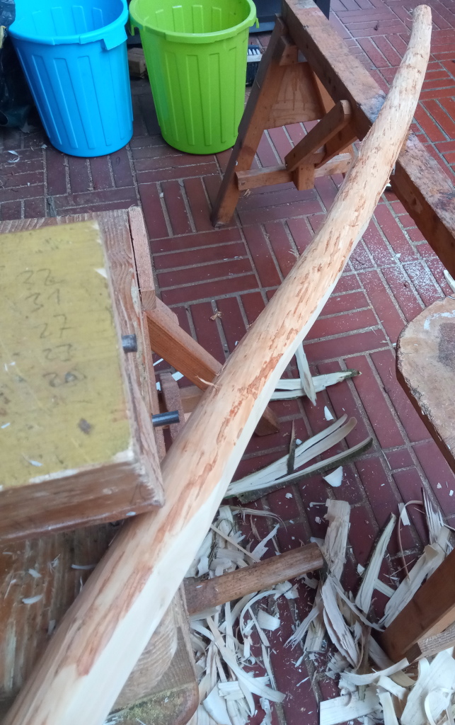 Ansonsten gibt es leider nicht viel Neues, die zwei Kandidaten trocknen vor sich hin, auf dem Hasel habe ich die endgültigen Breitenmaße eingezeichnet. Da ich komplett draußen arbeiten muss, es wirklich sehr unangenehm ist, und ich den leichten Bibbes habe, wie man hier in Hessen sagt, kann ich auch nicht viel machen im Moment.