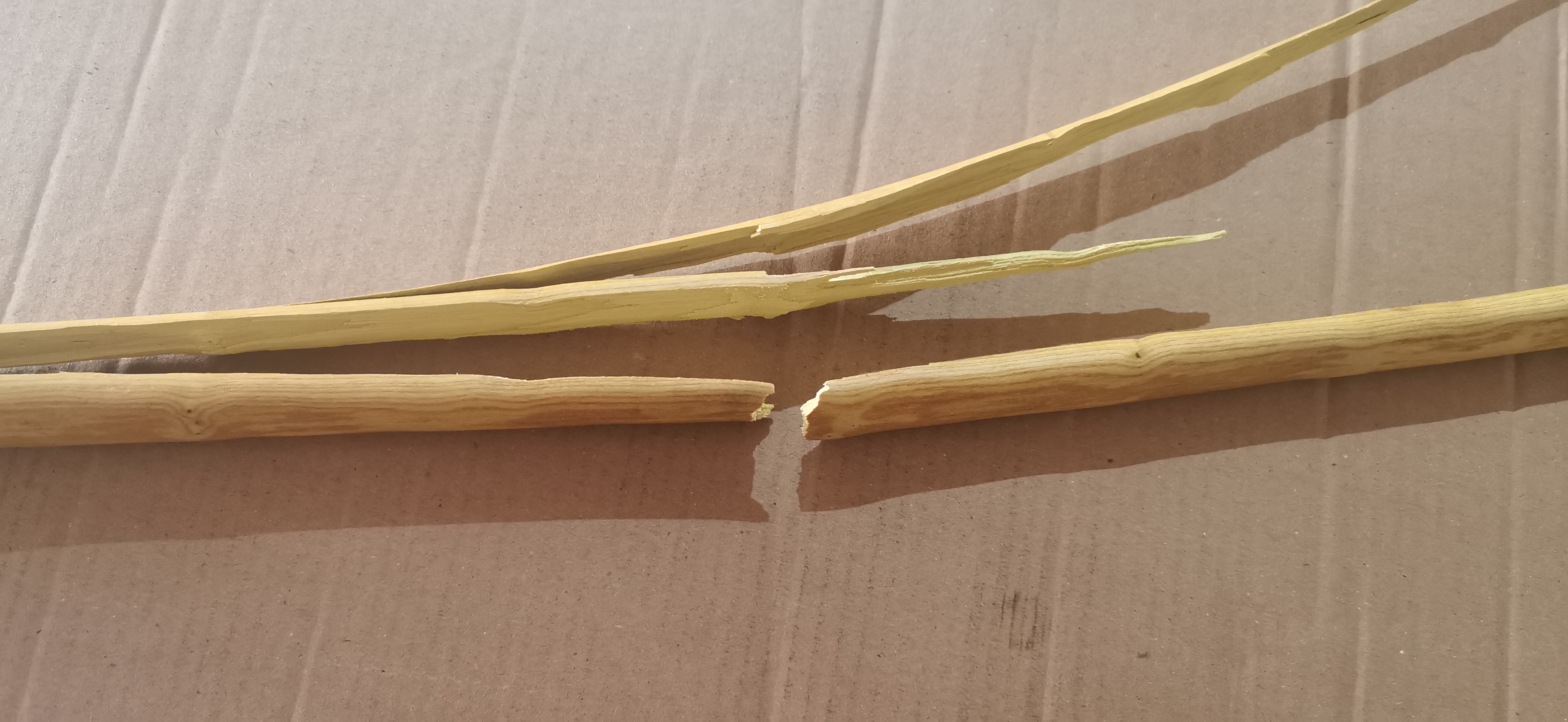 Das ist sehr schade und anhand des Fotos ich bin sicher, dass das Holz zu trocken war. Du hattest mal geschrieben, dass dein Lager eine extrem niedrige Luftfeuchte hat - war der Bogen dort gelagert?