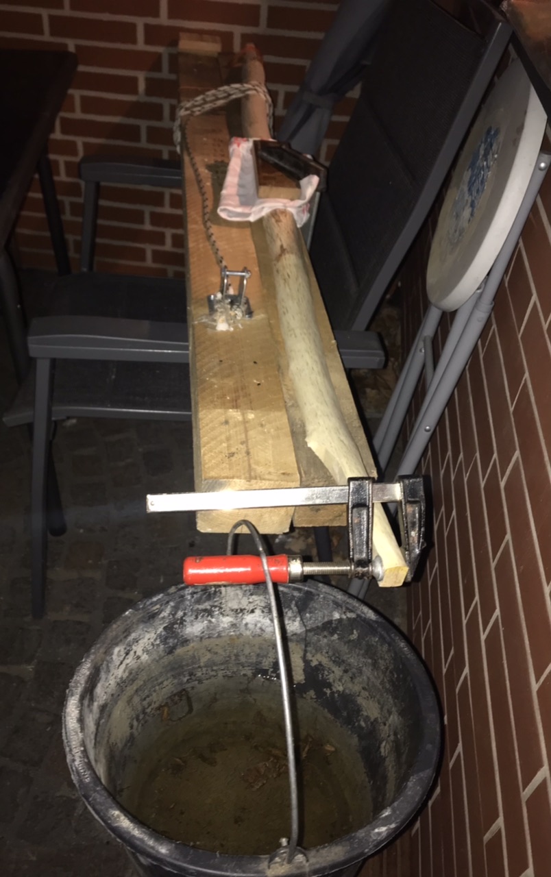 Bevor ich weiter machen kann muss der jetzt erstmal bisschen weiter trocknen weil mich das nasse Holz beim arbeiten nervt :-\