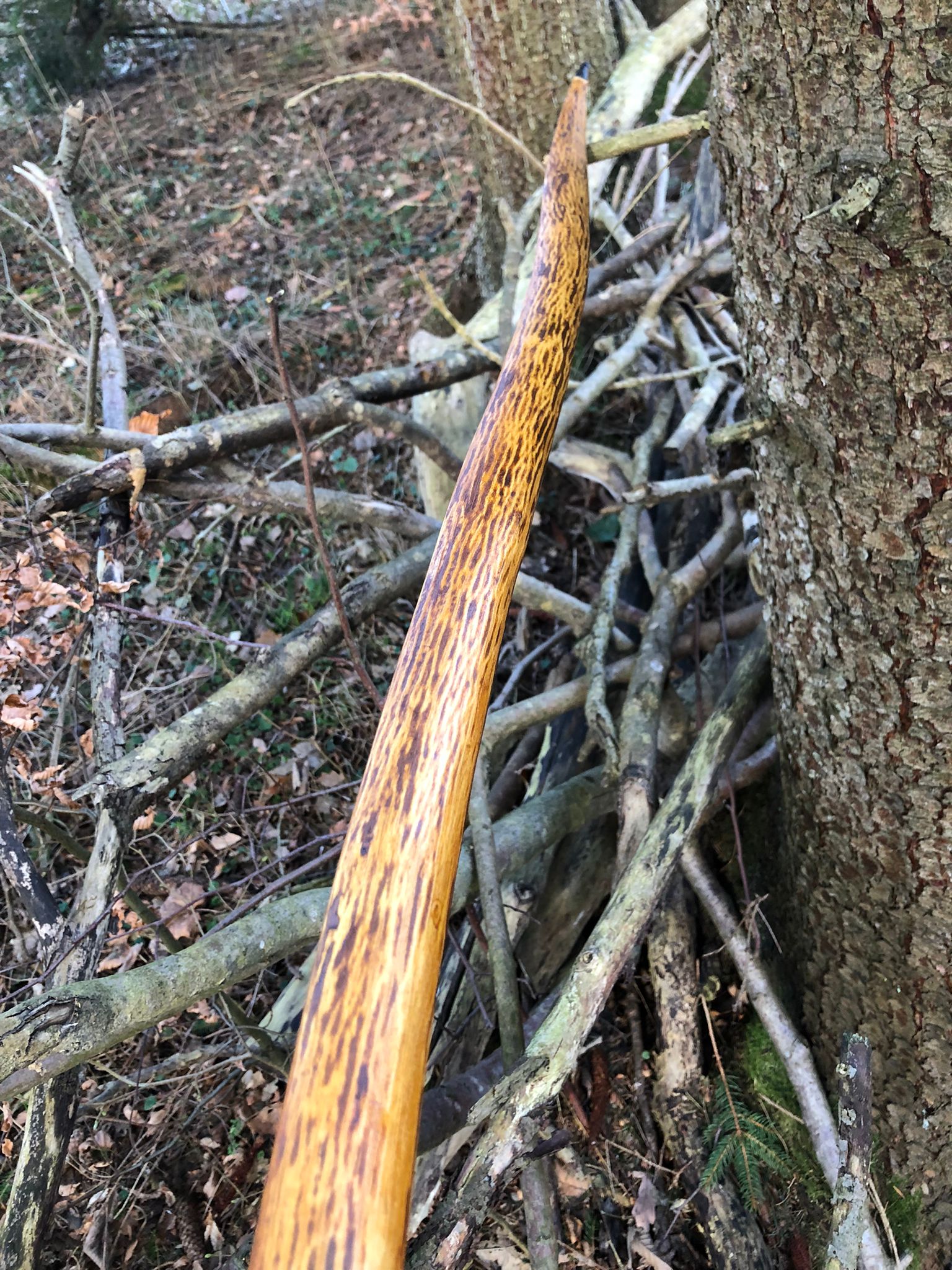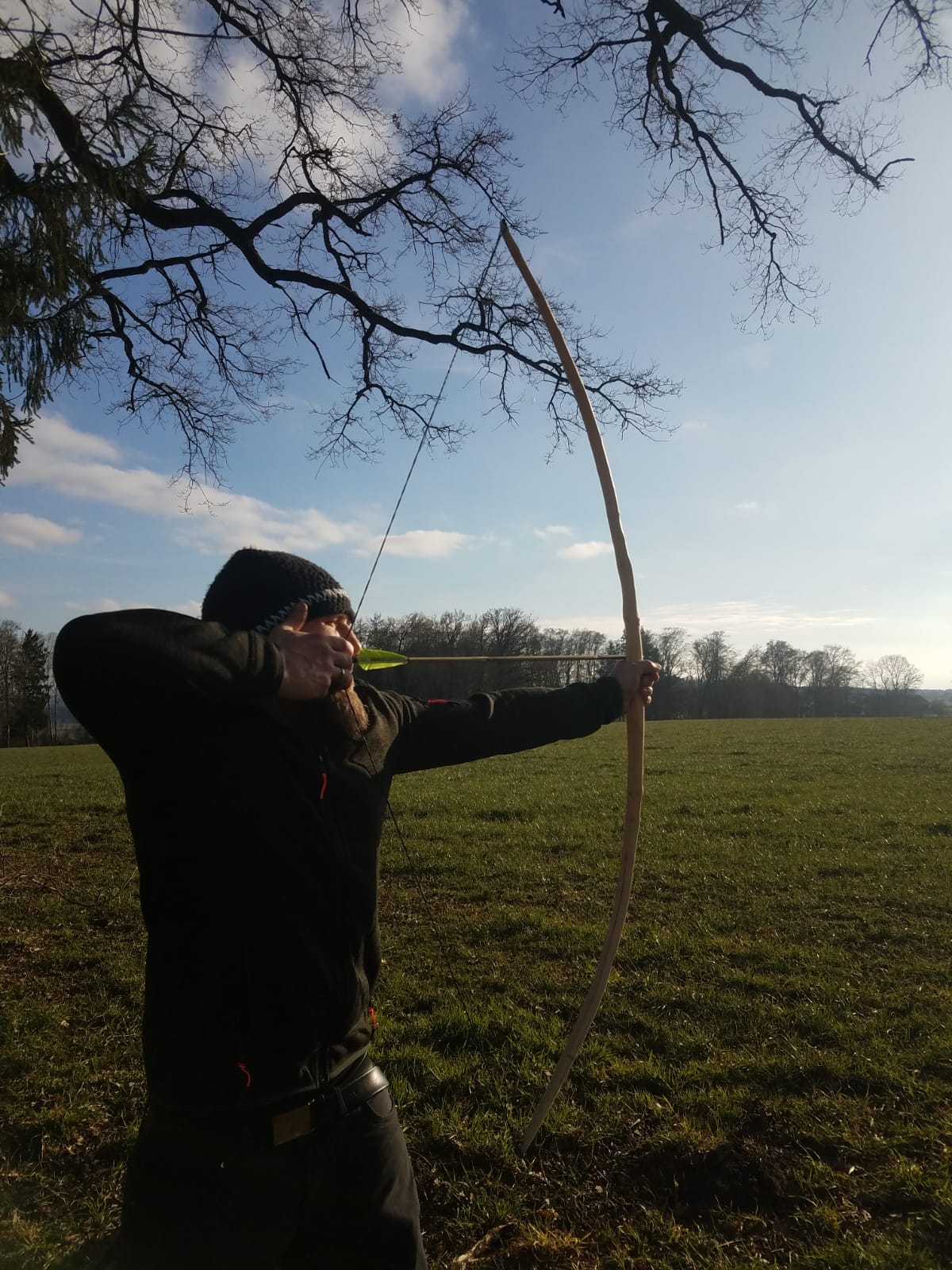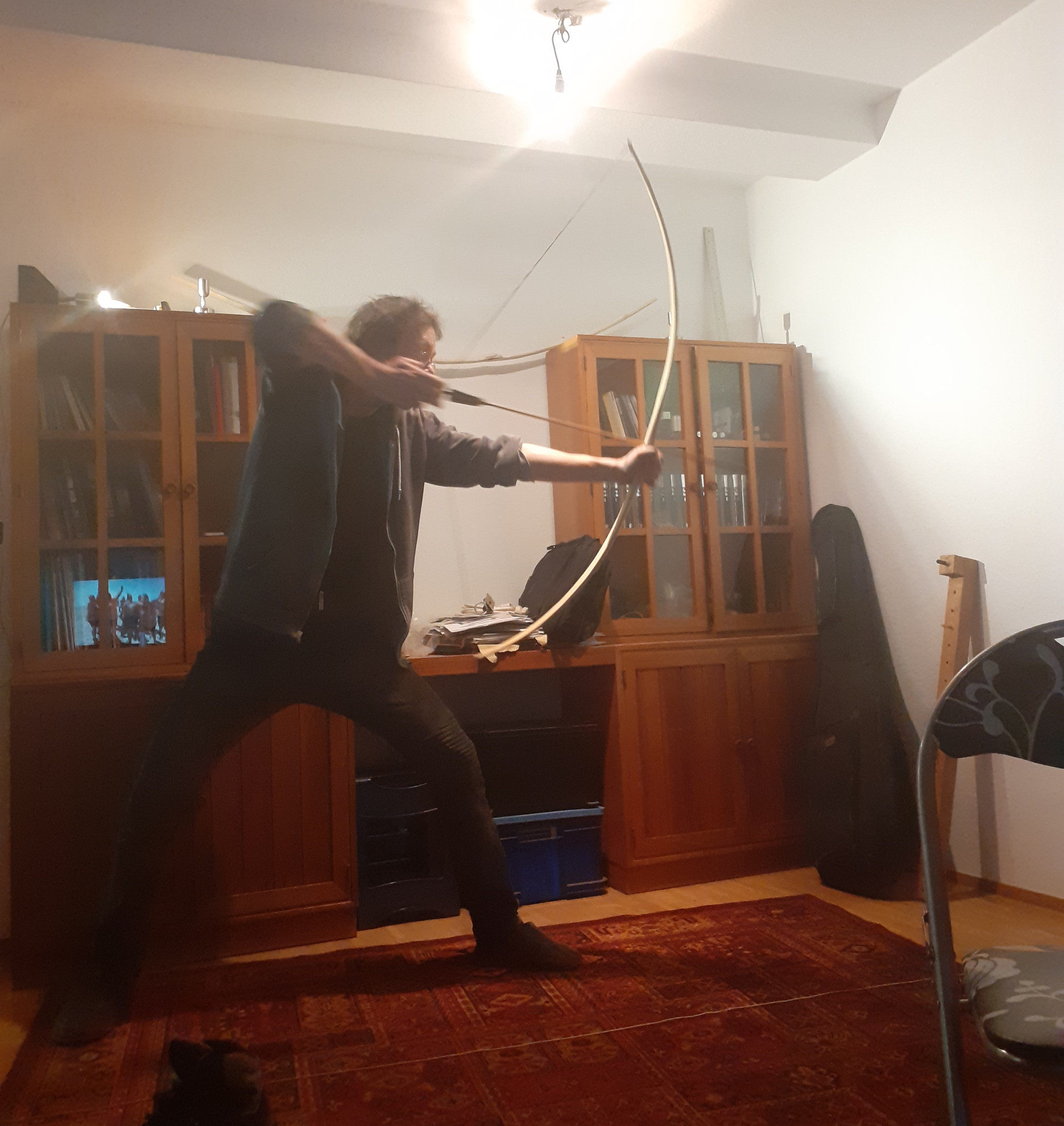 Dank an Benzi fürs gut zureden, hier ist er nun. Mein erster Ahornbogen, aber sehr wahrscheinlich nicht mein letzter. Klein, flink, spaßig. Knautschie aus naheliegenden Gründen, und Spalter, weil er heute beim Schießen auf einen Geräteschuppen ein Brett gespalten hat (ca. 15 m, mit den gezeigten Weidenpfeilen).