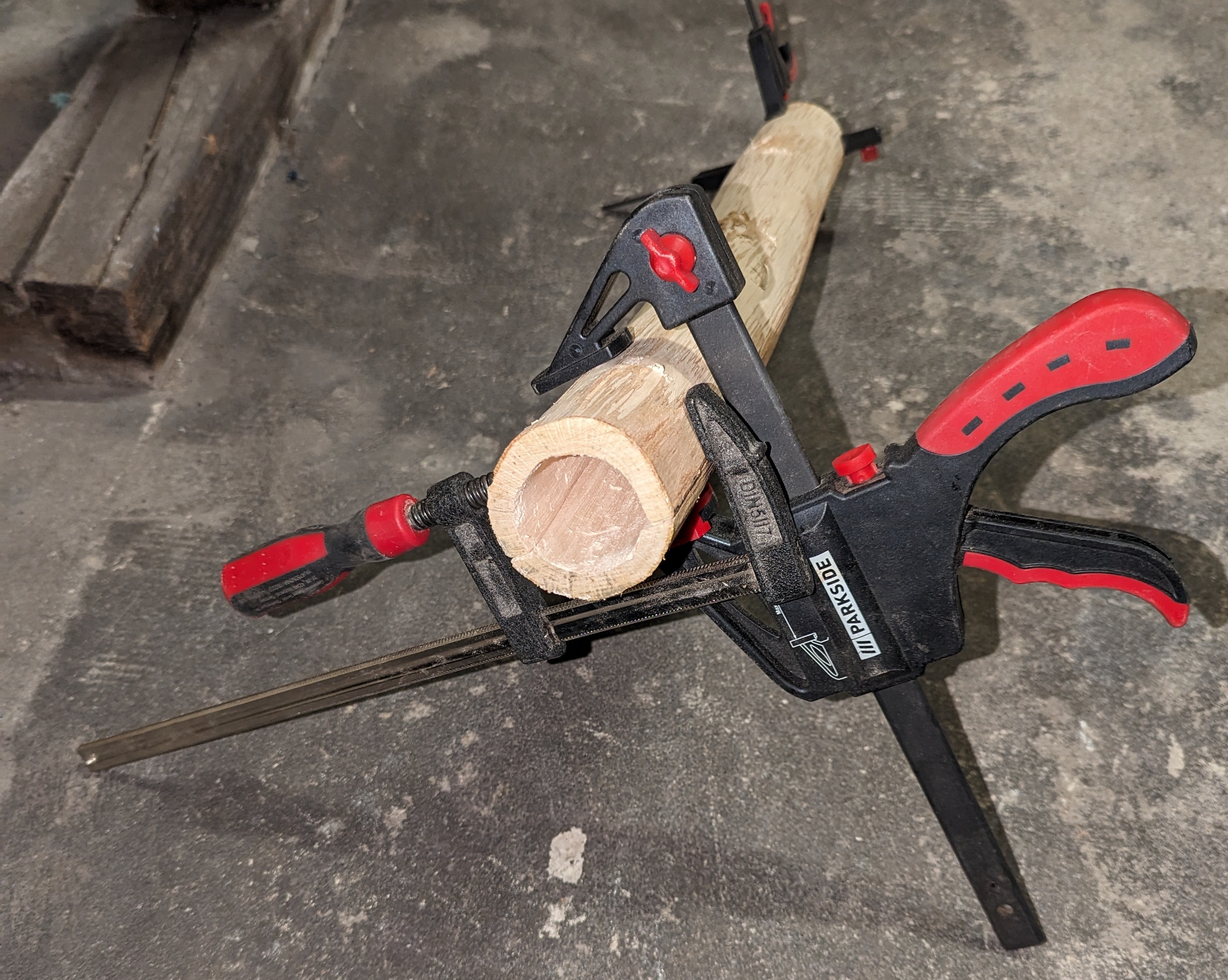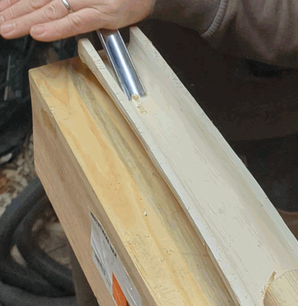Mit dem Hohlbeitel immer weiter Material abgetragen. Im Prinzip bin ich ungefähr den Jahresringen gefolgt.