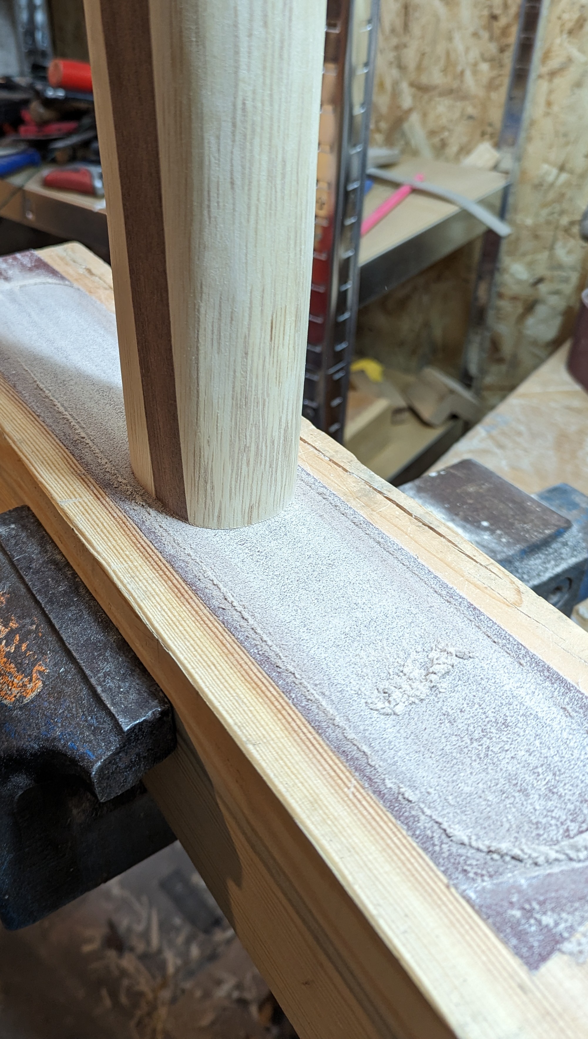 80er Schleifpapier auf einen Planen Balken geklebt und beide Teile Plan geschliffen.