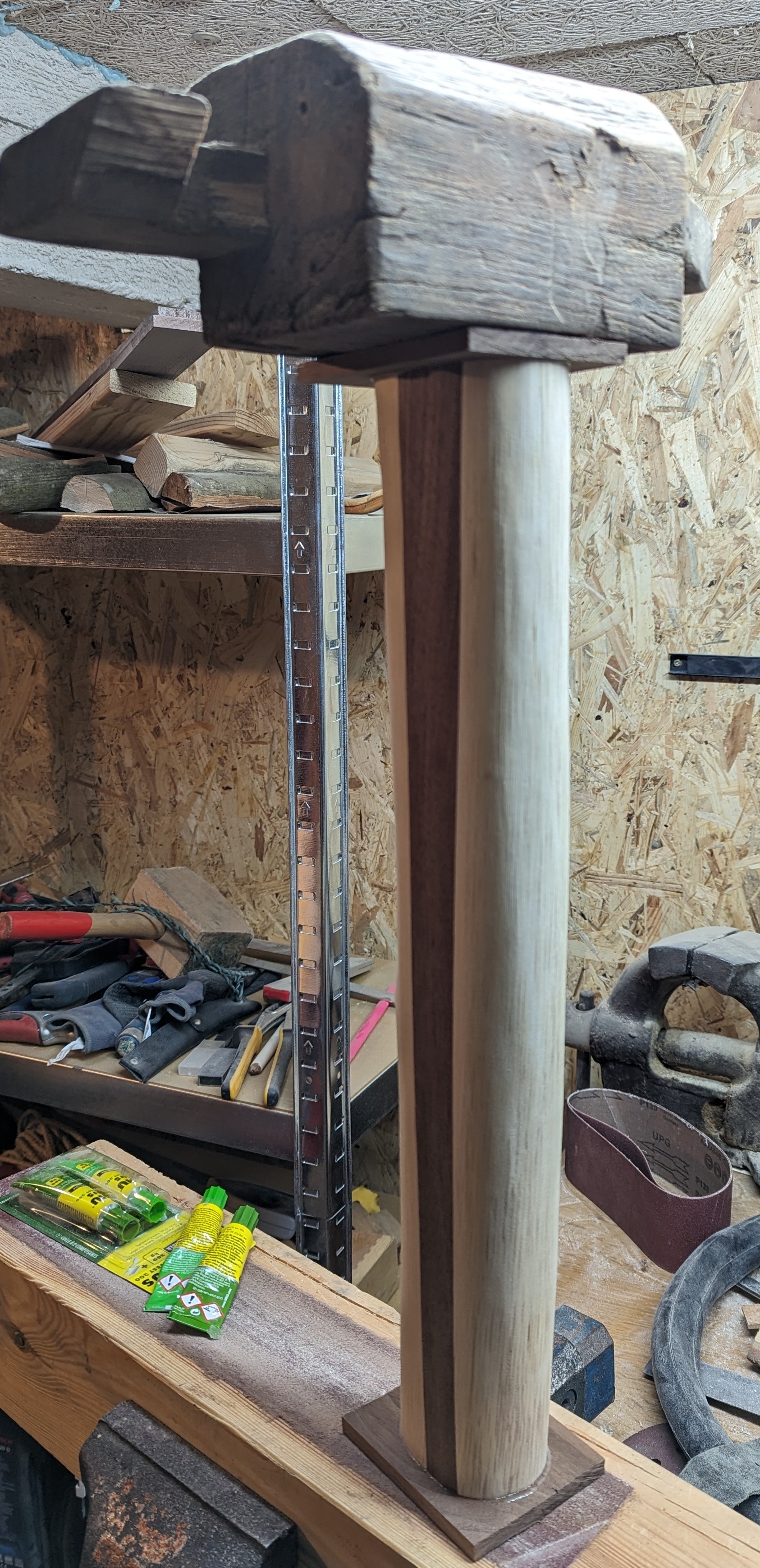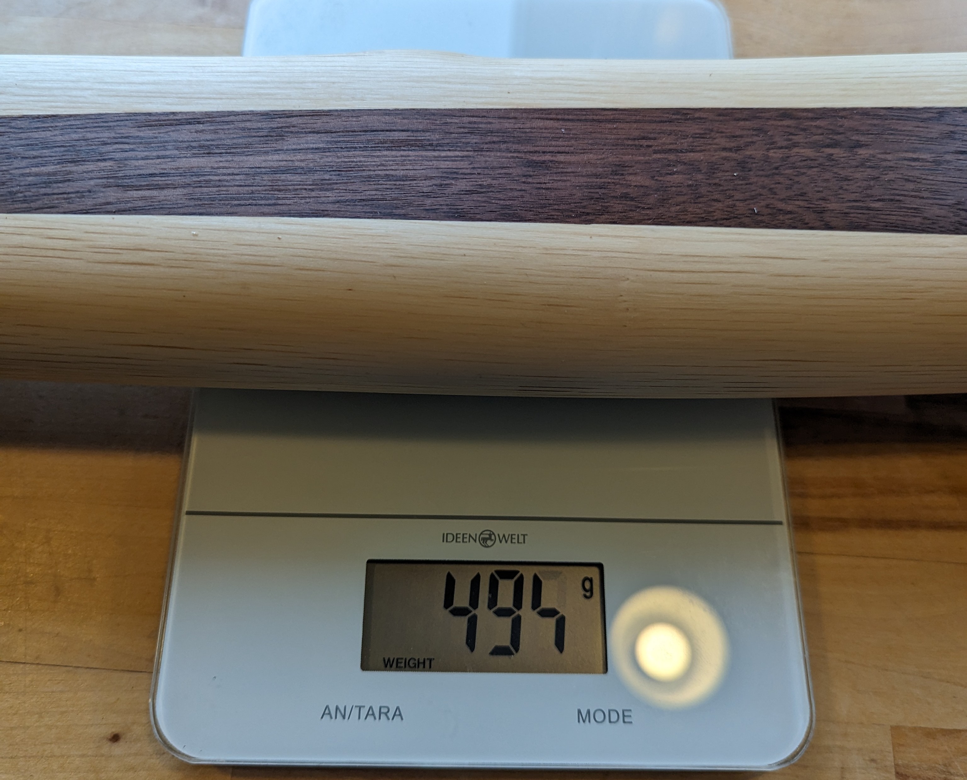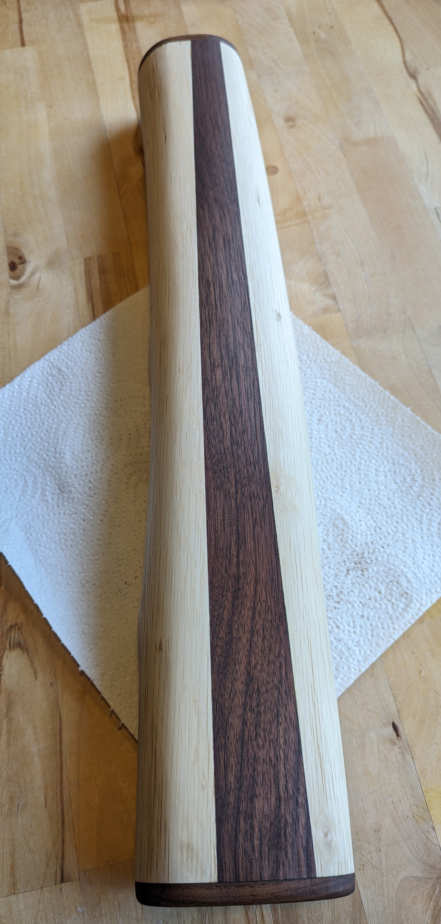 Zwei Stücke Nussbaum ganz Grob zugeschnitten, alle Klebeflächen mit Aceton gereinigt und mit Epoxi verklebt