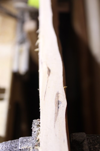 ich versuche das Griffstück so zu bearbeiten das ungespannt die Tips in der Waage sind, (ging hier aber nicht) dann fang ich an zu tillern, Kurz vor einem Tip ist jetzt eine Faulstelle, wohl alter Wassereintritt in den Ast, aufgetaucht, da habe ich aber nur noch 10 x 8 mm Material und wenn ich das RAUSarbeite ist der viel zu schwach um auf mind.30 zu kommen... mal sehen was wird..