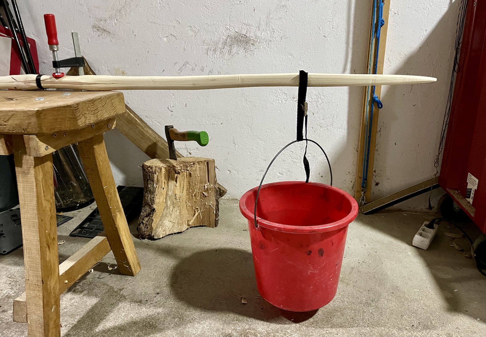 Immerhin konnte ich Erfahrung mit dem Wolfschen Keil sammeln. Der Griff hätte sicher gehalten und die angestrebten 40 bis 45 Pfund hätte der dünne Stecken auch hergegeben.