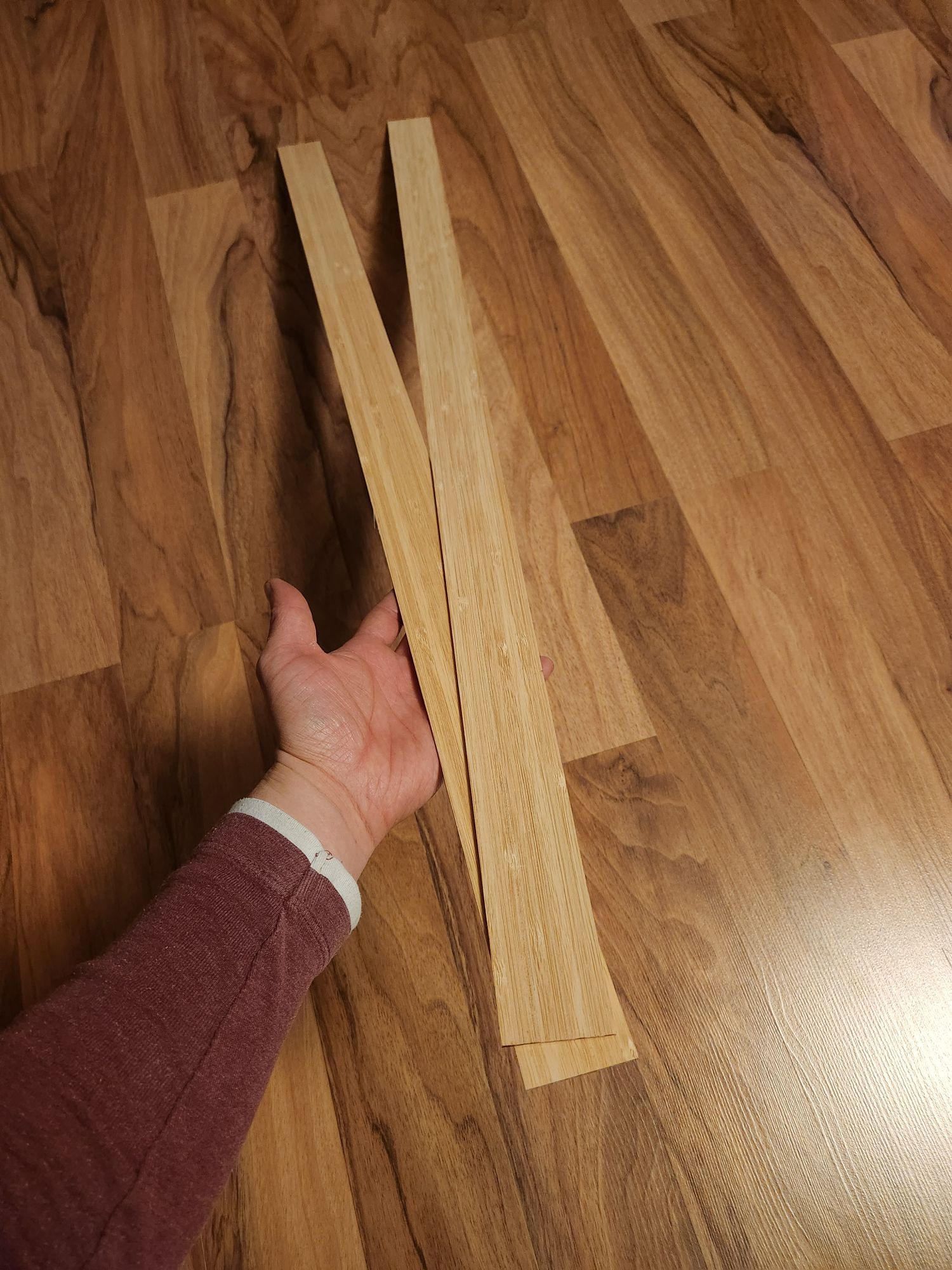 Zur Erklärung, ich hab ja meine damaligen Versuche alle mit Bambus gestartet weil ich da noch keinen Zugang zu frischem Holz hatte. Und da ich jetzt festgestellt hab dass das Holz was ich jetzt habe wohl Qualitativ einfach nicht ausreicht scheint es mir wieder Sinnvoll auf Bambus zurückzugreifen. Und vorm Spleißen hab ich ja auch immer Angst (was die Fertigungspräzision angeht) weshalb ich die Wurfarme aus einem durchgehenden Streifen machen werde und eine Griffschale vorne aufsetze. Ich weiß das ist auch etwas riskant aber ist mir im Moment sympathischer. Ich hab die Beschreibung für den Bau eines Koreanischen Kompositbogens im TBB 3 durchgelesen. Da steht dass nicht die Außenseite vom Bambus genommen wurde sondern dass da ein planer Streifen gefertigt wurde und dass das Bambus auf nur 3mm runtergearbeitet werden muss. Deshalb kam mir mein Bambuslaminat wieder in den Sinn, für das ich keine Verwendung hatte. Es hat genau die richtige Länge, 2 Streifen mit 2mm dicke. Und da der Griff ja relativ stark reflex gebogen werden muss und mir meine bisherigen biegeversuche mit Bambus immer in die Hose gingen, werde ich die beiden Streifen in einer Form laminieren.