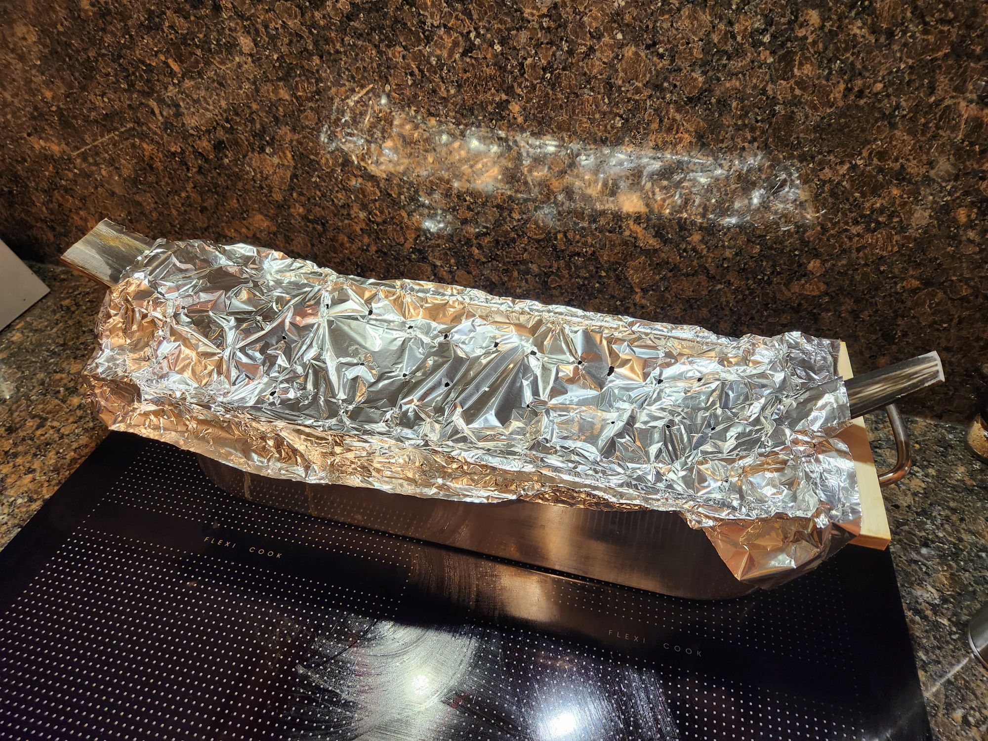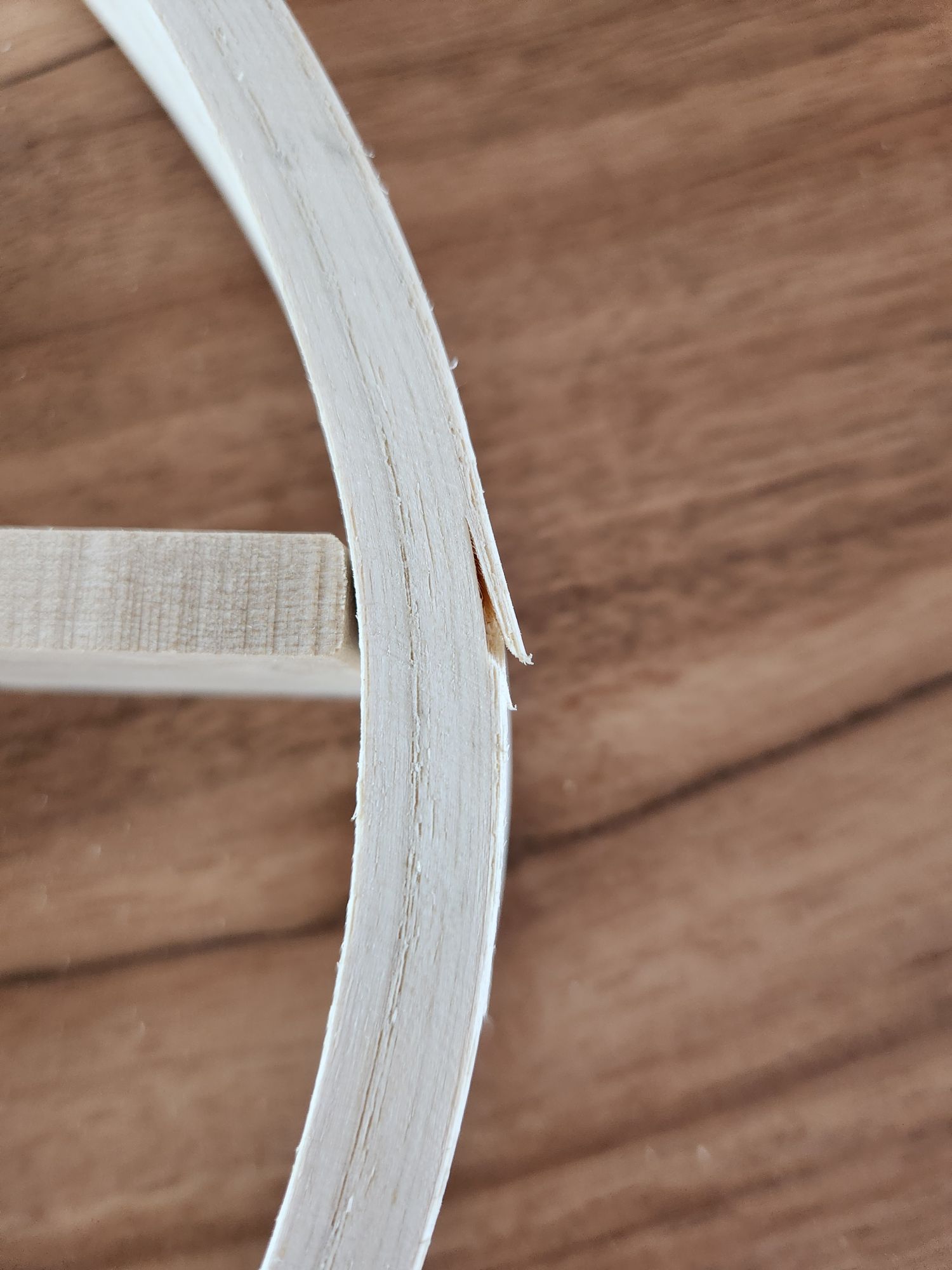 Den ersten Streifen hab ich auch schon gedämpft. Der kam heute morgen fast gerade aus der Form. Hab ihn dann mal auf etwa 4cm breite zugeschnitten und wieder eingespannt damit er sich nicht wieder eindreht.