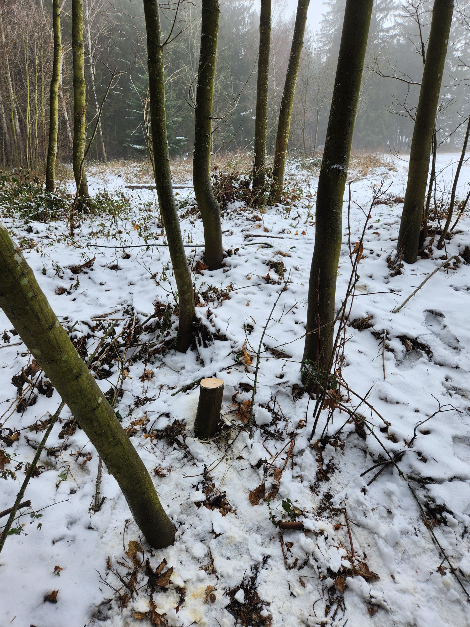 Die andere Hälfte des Staves ist nämlich noch freier von Ästen, ist hald nur ein wenig Deflex. Also hab ich die jetzt auf 1,9m gekürzt, entrindet und einen Halbpyramidalen Bogen mit einer Verjüngung von 4cm auf 2cm aufgezeichnet. Hier sind mir aber beim entrinden einige komische "Male" aufgefallen. Weiß jemand was das ist und ob das Probleme machen kann? Davon sind mehrere über die ganze Länge verteilt. Auf der anderen Hälfte war mir sowas nicht aufgefallen. Ich hab dann die Enden aller 3 Rohlinge versiegelt und alle in der Garage liegen gelassen da es draußen zu Nass ist.