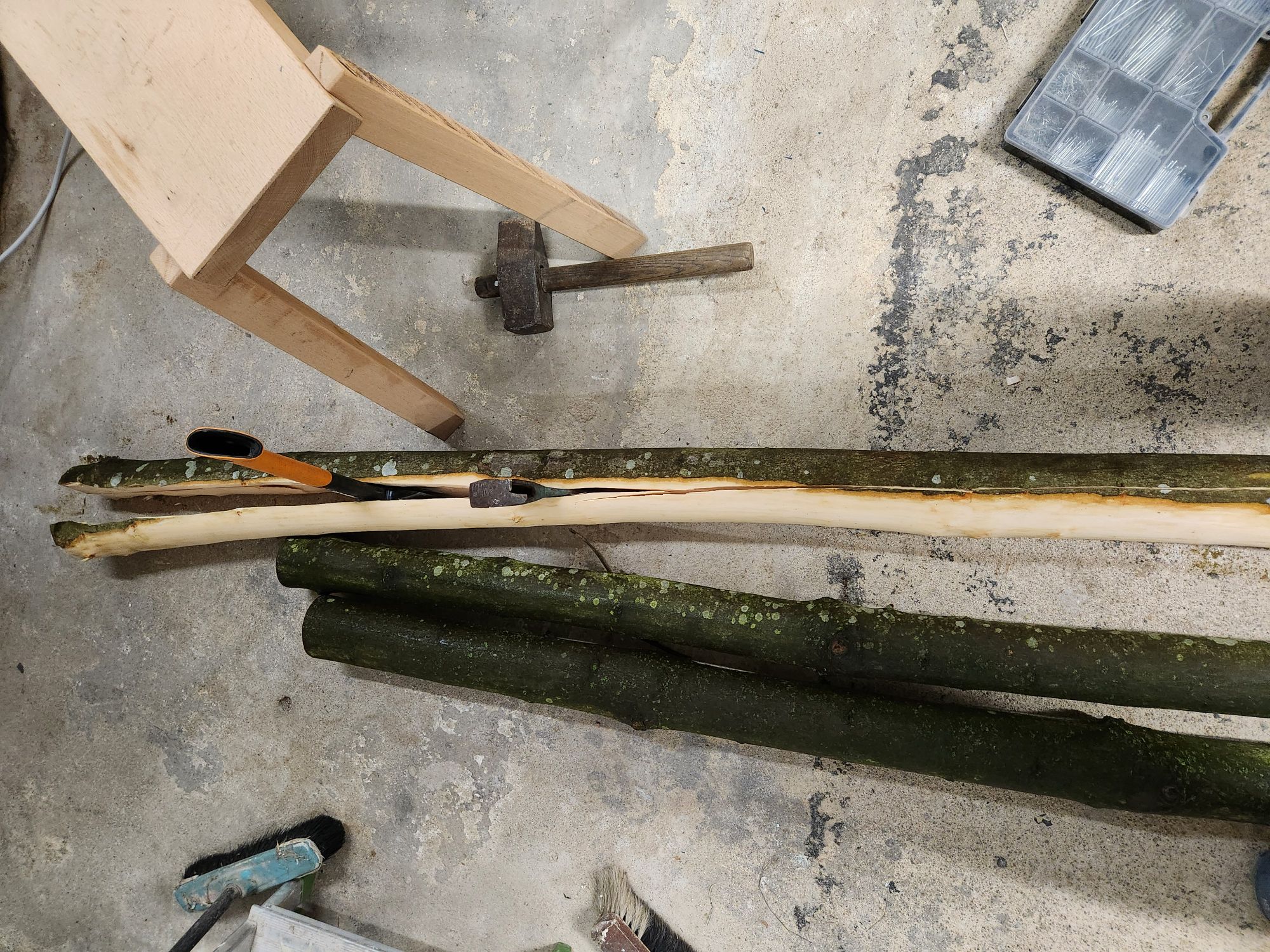 Beim langen Stave hab ich noch die Rinde entfernt und die Enden versiegelt. Die anderen sind noch unberührt und alle liegen fürs erste draußen.