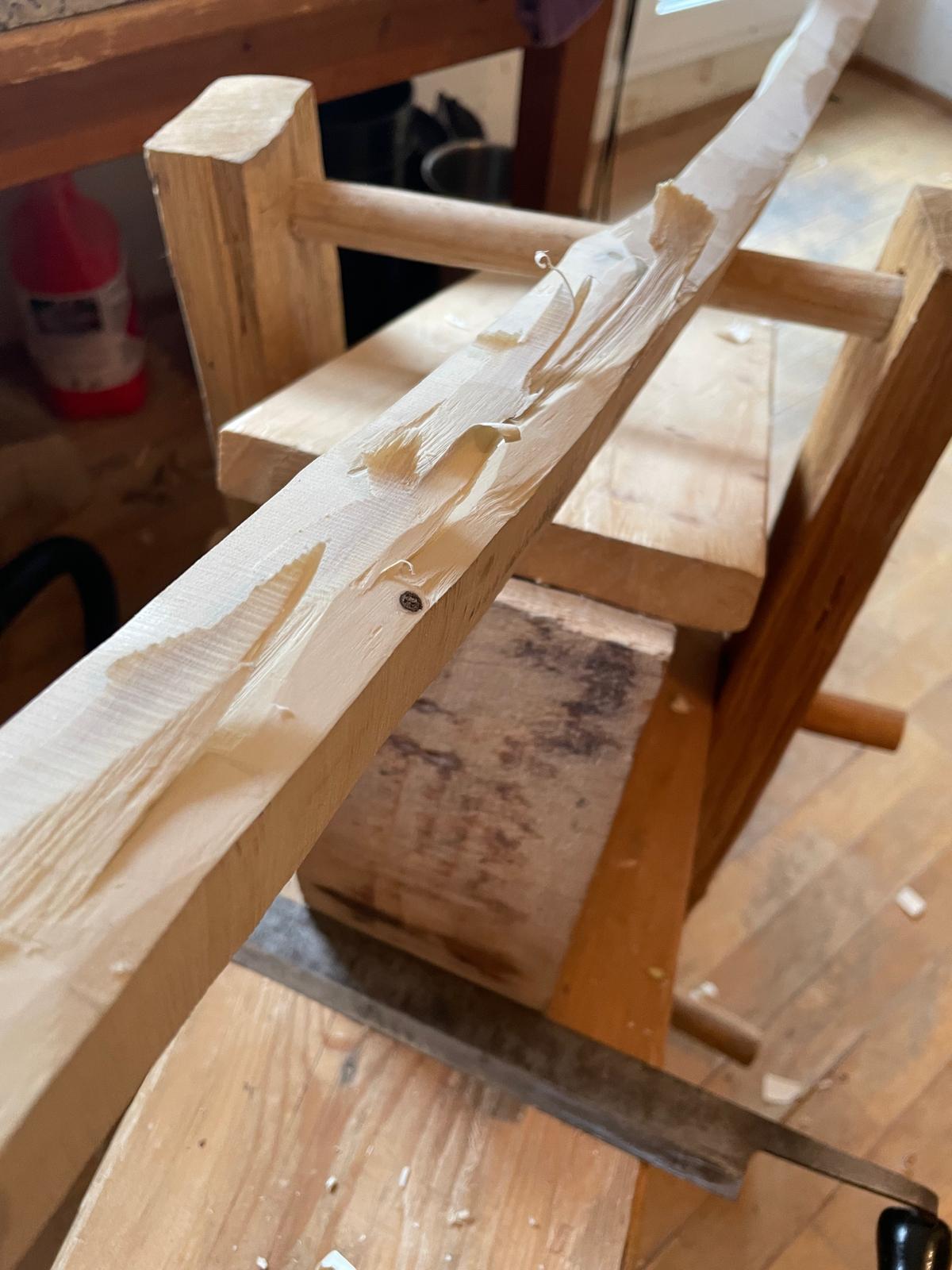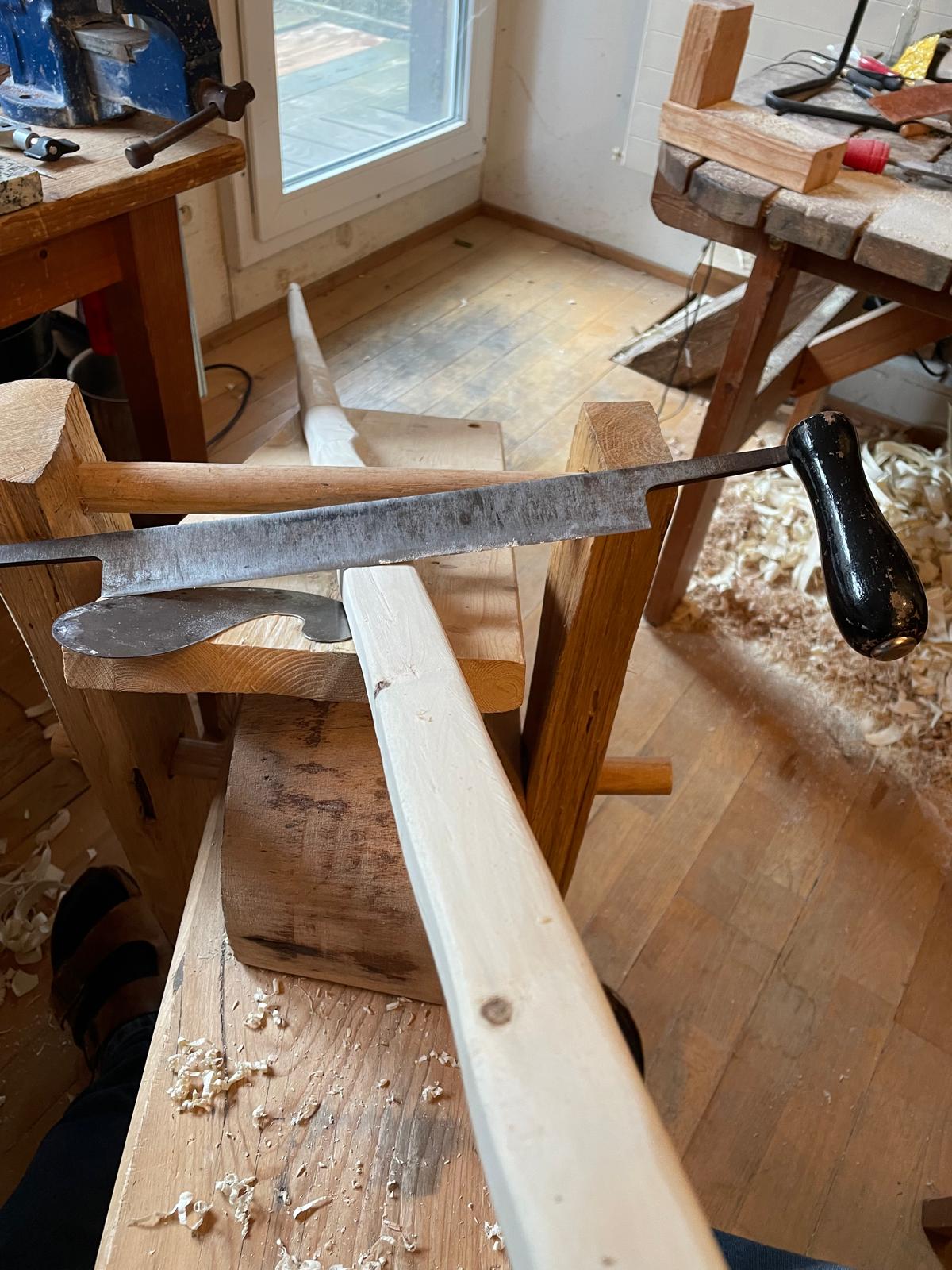 Ilex reißt leicht, daher schnell runterarbeiten bis zur Mitte und immer die Enden und Astlöcher neu versiegeln.