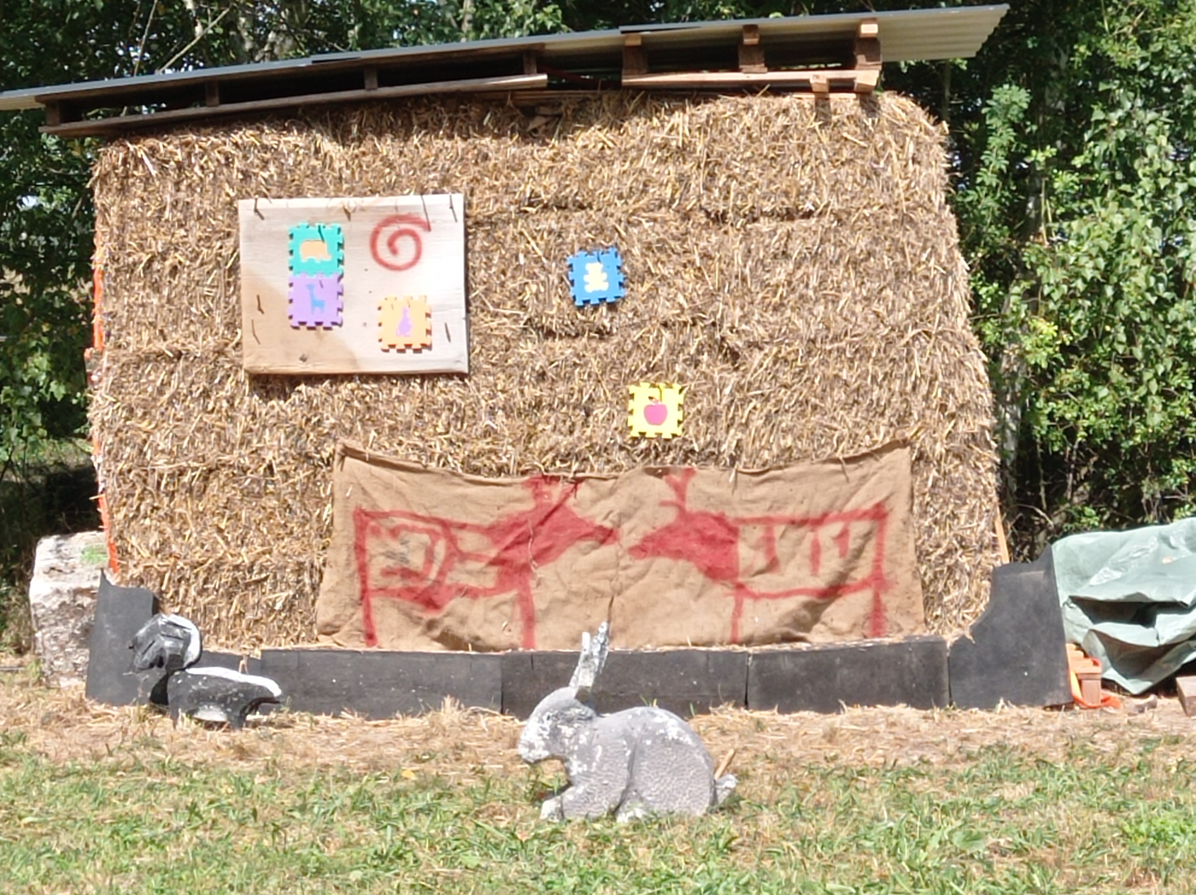 Die Strohballen haben ne geplante Lebensdauer von ca. 2 Jahren, dann werden Sie ersetzt. Da ich sie direkt hier aus dem Ort bekomme, wachsen meine Zielscheiben regional, die Transportwege sind minimal und anschliessend werden die Ballen auf natürlichem Wege zersetzt (ich habe sogar irgendwo noch ein Buch: Gärtnern mit Strohballen......).