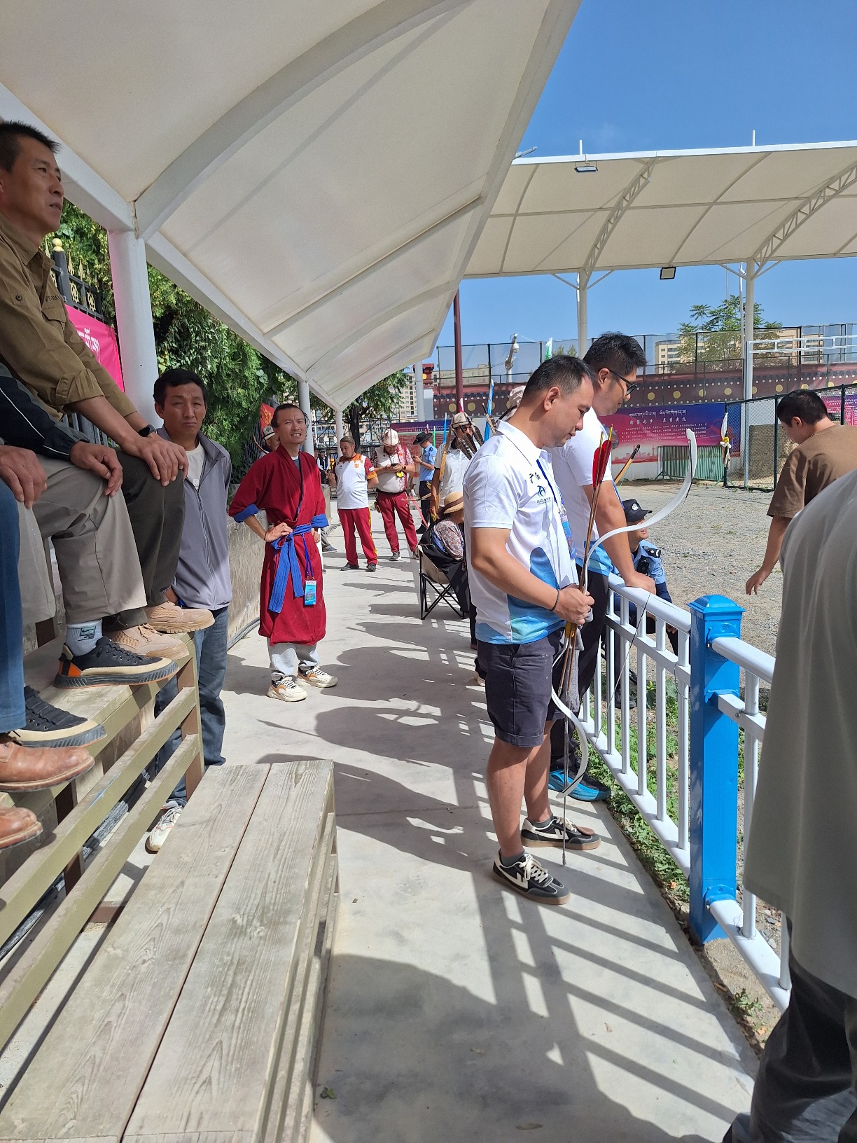 Es gab hier dieses mal 8 verschiedene Schießplätze. Auf einem hatten tatsächlich nur tibetische Mannschaften mit traditioneller Kleidung und ausschließlich traditionellen Horn-Sehne Bögen geschossen. Das war sehr ähnlich deinem Video.