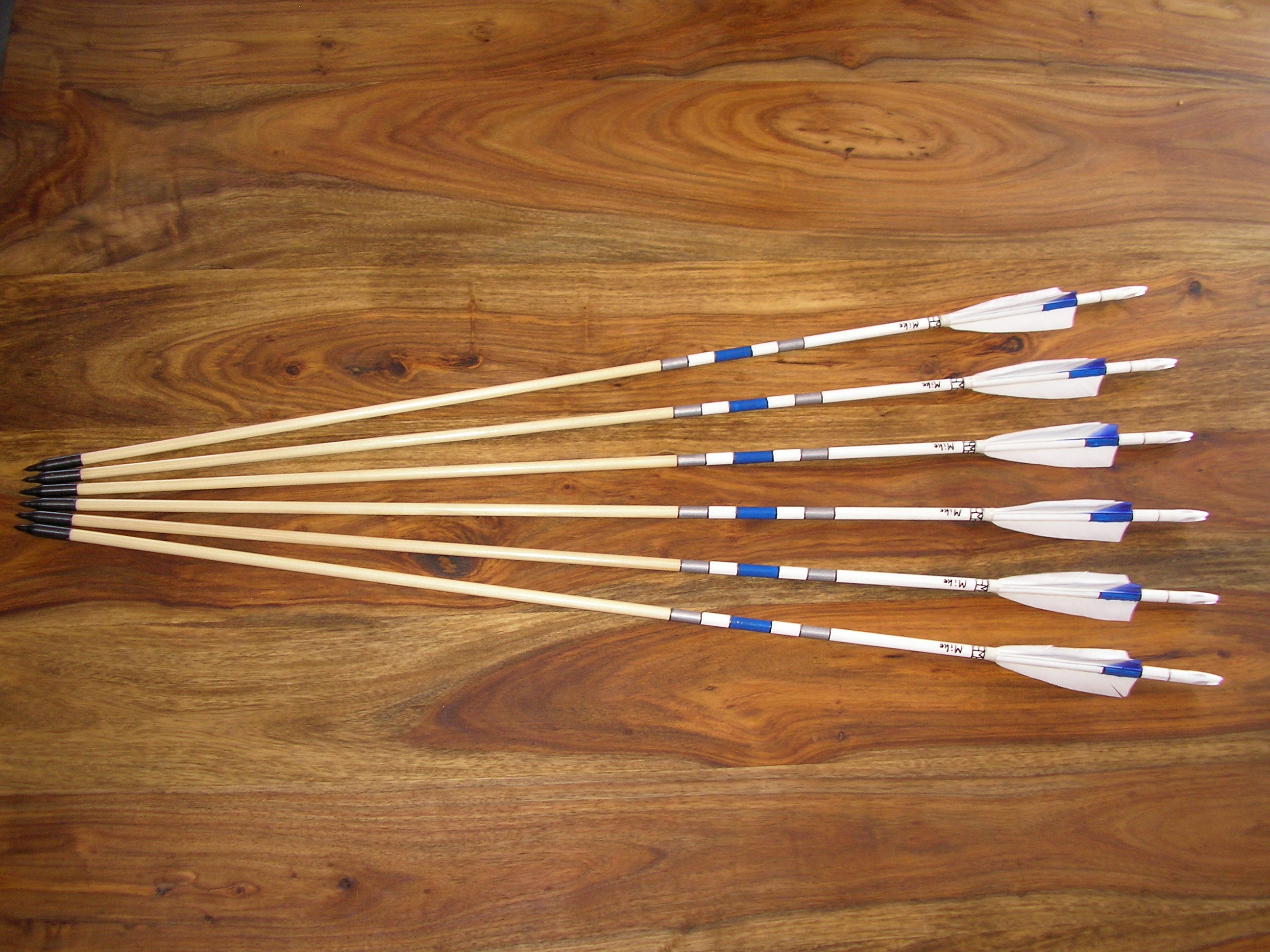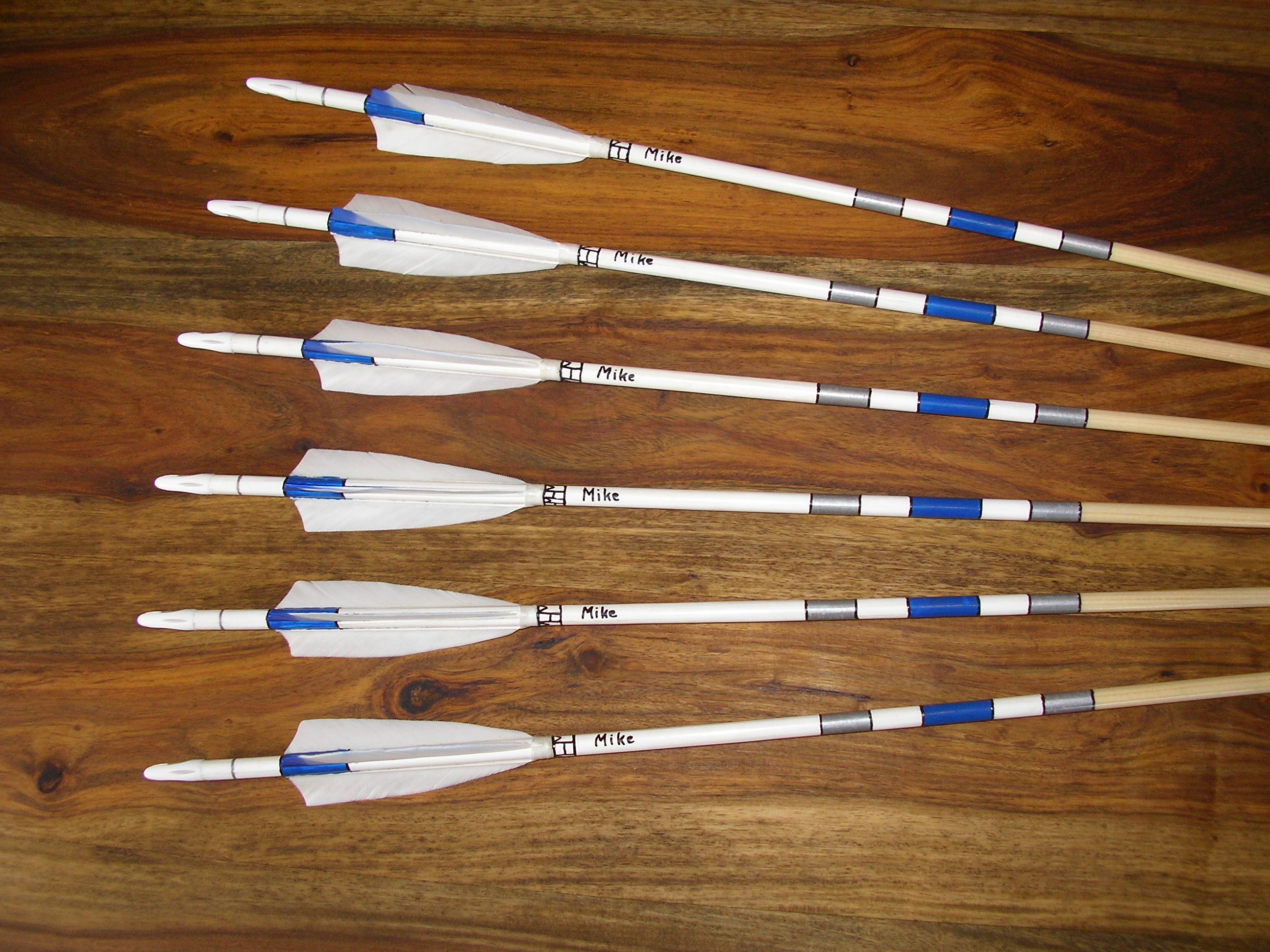 Hier das Ostergeschenk für meinen Papa, ein Satz neuer selbstgebauter Pfeile. Es sind eigentlich 12, hab aber nur sechs fotografiert. Die Leitfedern sind alle selbst teilgefärbt. Ich bin echt stolz drauf