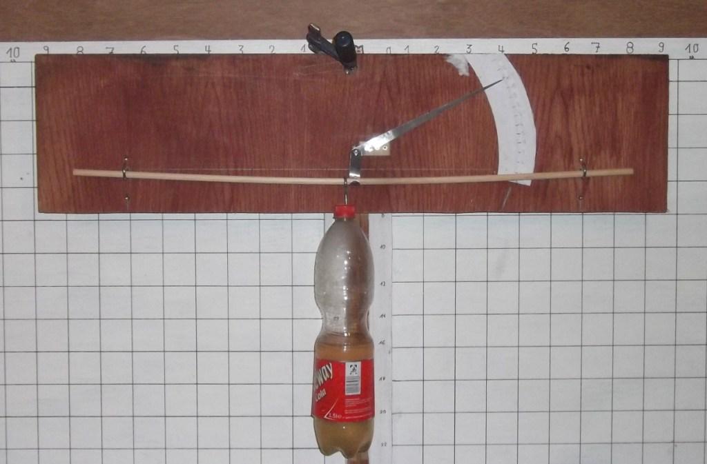 Als Gewicht dient eine alte Colaflasche mit etwa 900g Regentonnenwasser... (nur falls jemand wegen der Farbe des Wassers auf irgendwelche blöden Ideen kommt, um was es sich denn da handeln könnte...
