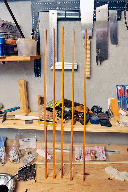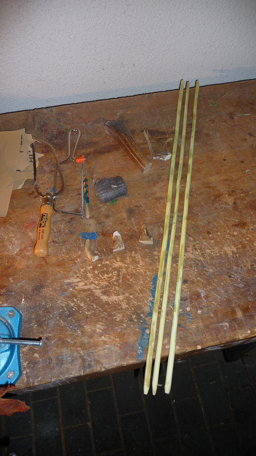 Drei Schäfte sind geschiffen, abgelängt und gebeitzt - Spine leider etwas unterschiedlich (41/47/64) - aber ist jetzt halt so.