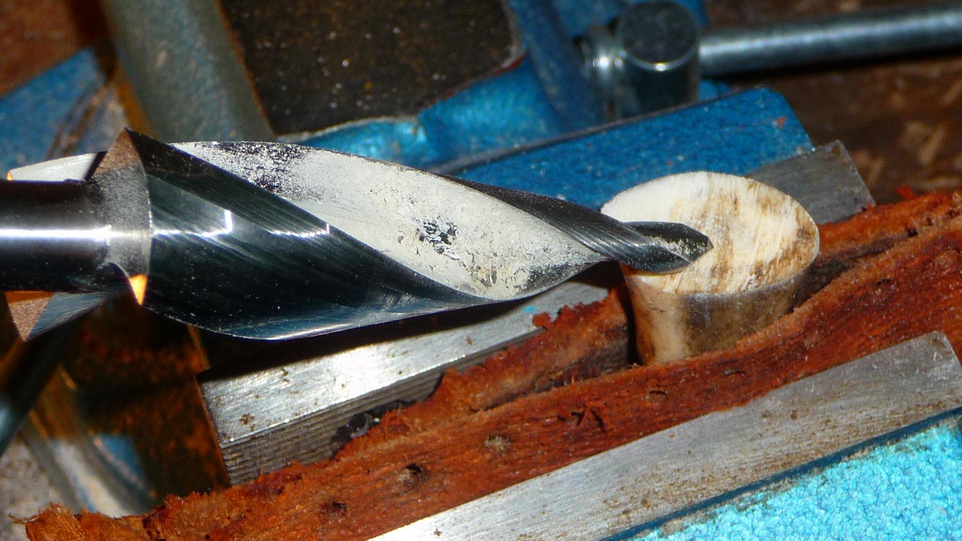 Und dabei habe ich auch den Spine als Rohschaft gemessen. Je nach Drehung pendelte der um 140#. 140#, 76g ... da hilft nur eins: barreln! Komplett runterschleifen war keine option, nachdem ich die Knubbel so energisch erhalten, und geradegebogen hatte ...