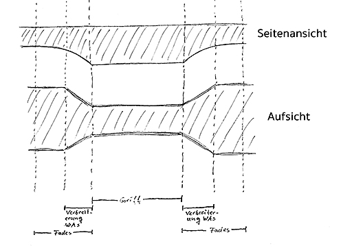 (Ich mache den Verbreiterungsbereich meist ca. 5cm lang und die Fades 7,5cm)