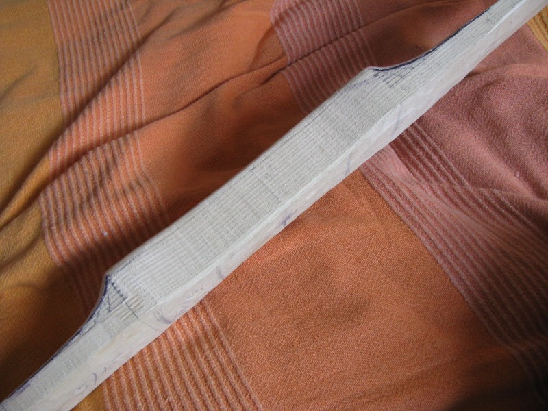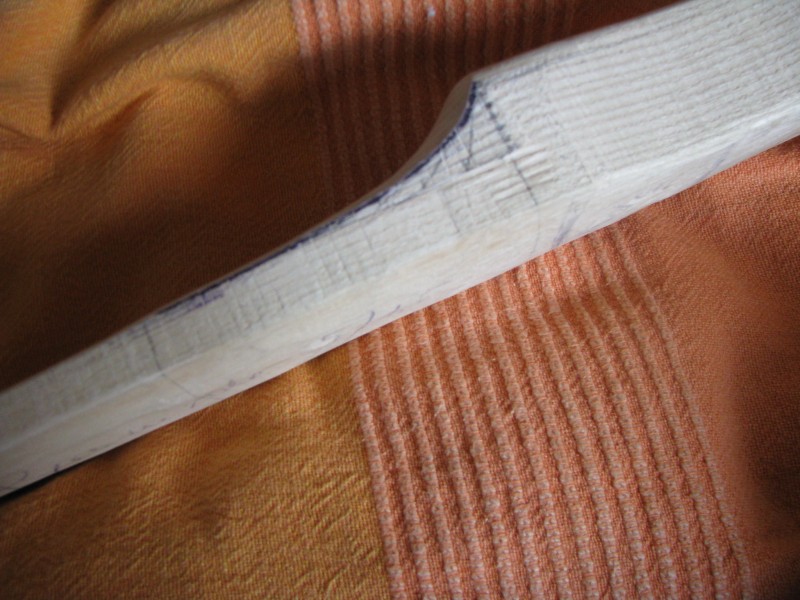gearbeitet. Trotzdem glaube ich , dass man am Griff noch einiges an Holz wegnehmen könnte. Die Kanten
