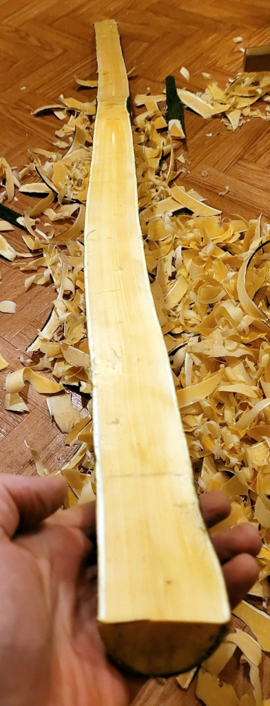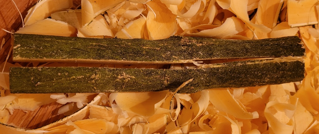 Ich säge Kantel aus dem Viertelstamm, die ich später hobel und verleime zu Bohlen, aus denen dann Schalen gedrechselt werden könnnen. Trocknung wie Billets s.u.