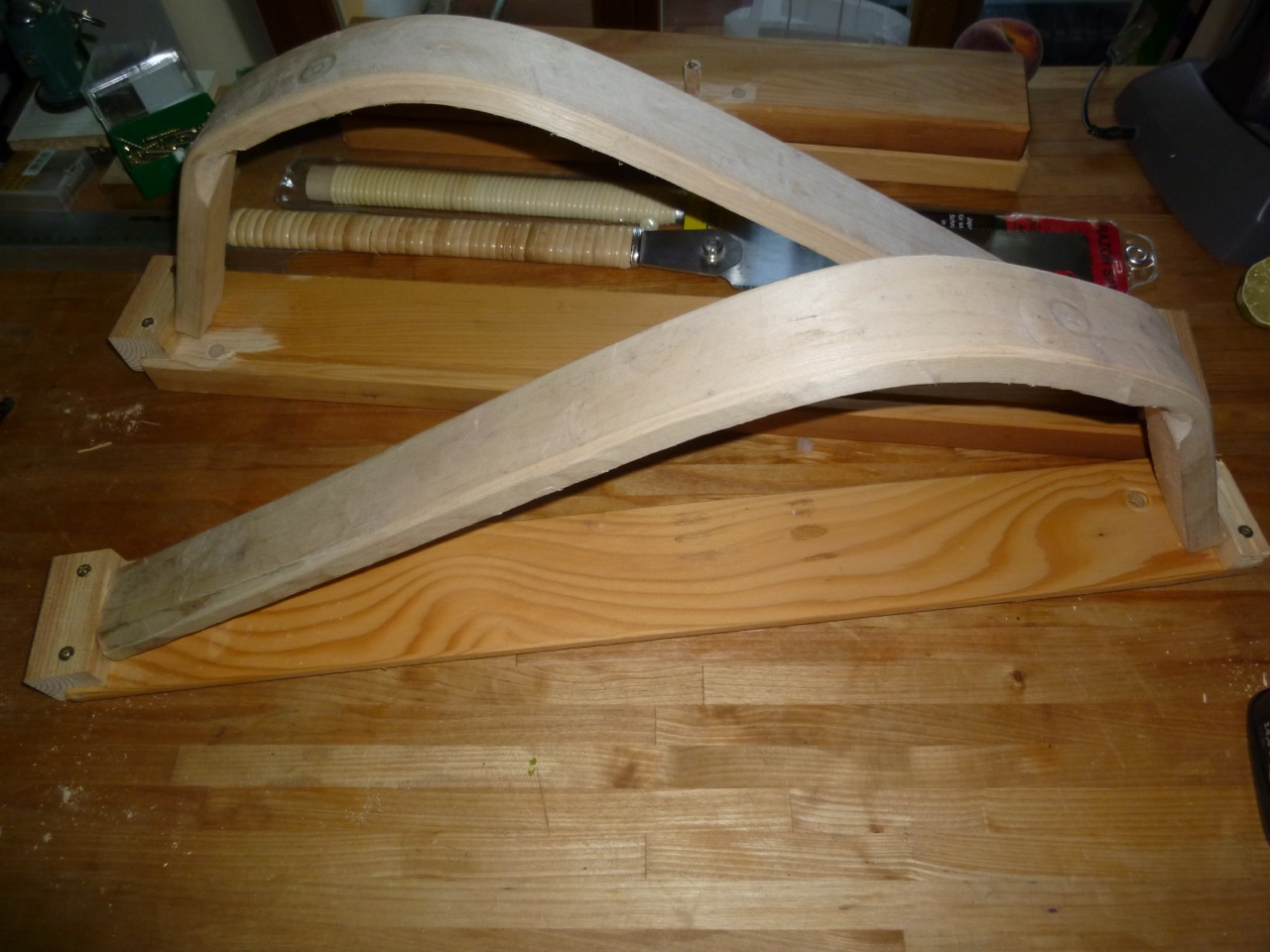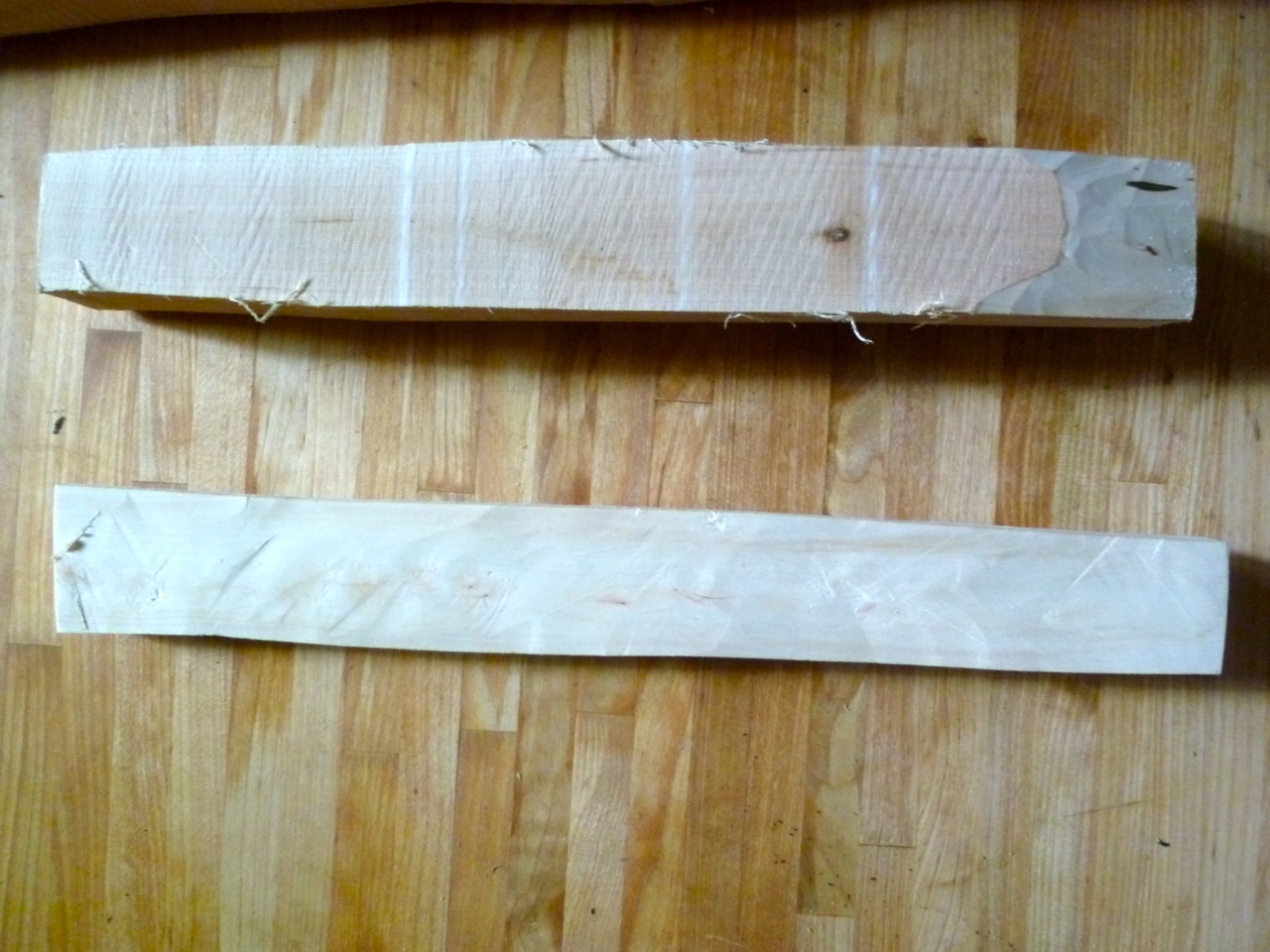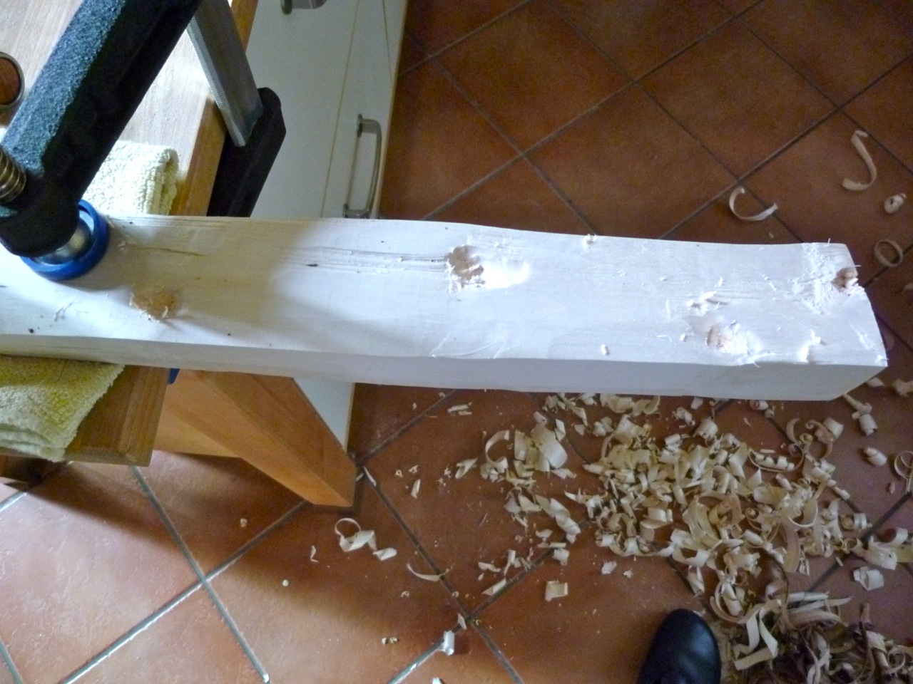 2.)Die Abdrücke der Schraubzwingen. Die solltest du vor der Verzahnung noch wegnehmen, da du dir sonst wahrscheinlich Blasen in der Leimfuge einfängst. Am besten von vornherein Vermeiden durch Verwendung des flachen Endes der Schraubzwinge oder durch Unterlegen eines breiten Holzstückes vor dem Festziehen. Habe das gleiche Problem aber auch schon gehabt