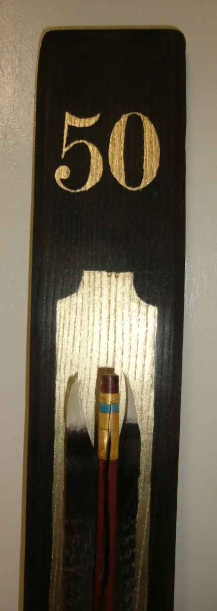 hier mal ein Pfeil, den ich als Geschenk für eine goldene Hochzeit gemacht hab (als Wanddeko)