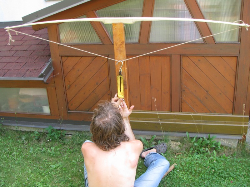 Auf den Bildern sieht man wie ich mich bemühe wieder mit suboptimalen Werkzeug die momentane Bogenstärke