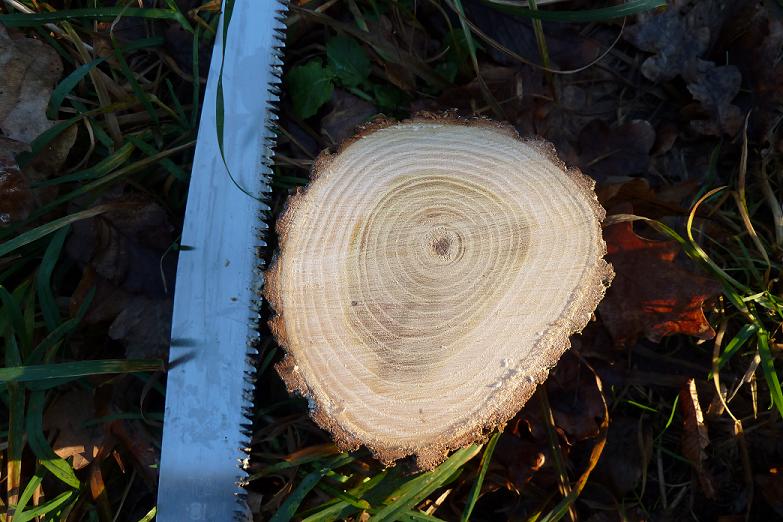 Jetzt noch mal gekürzt und am abgesägten Stück die Jahresringe: