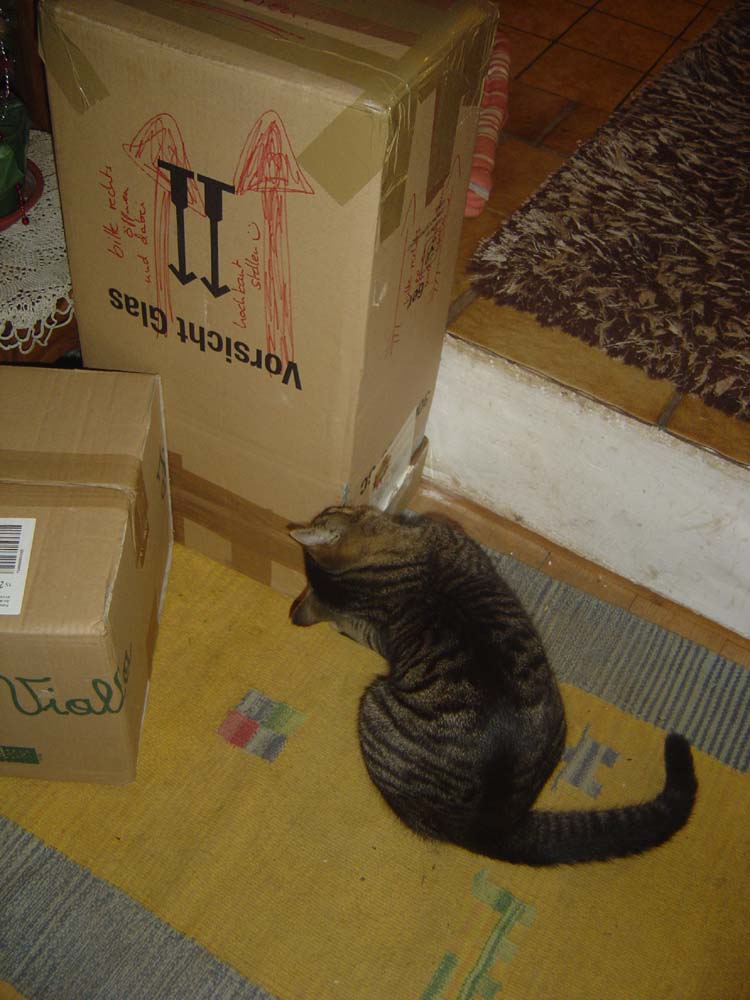 für Verwirrung sorgte unser Kater Felix..... ist da was für unsere Haustiere zum Fressen drin?