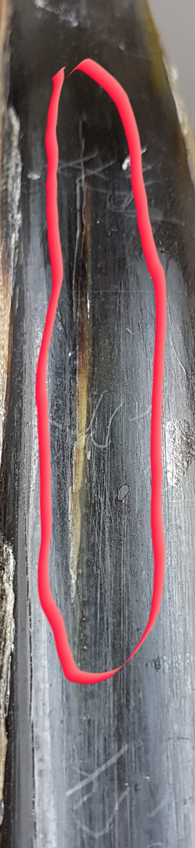 Und hier dann ein garnicht so schönes Weihnachtsgeschenk - Längsrisse im Horn, mal sehen wie die sich jetzt noch weiter entwickeln und wie ich dann damit umgehe oder ob ich wieder von vorne anfangen muss