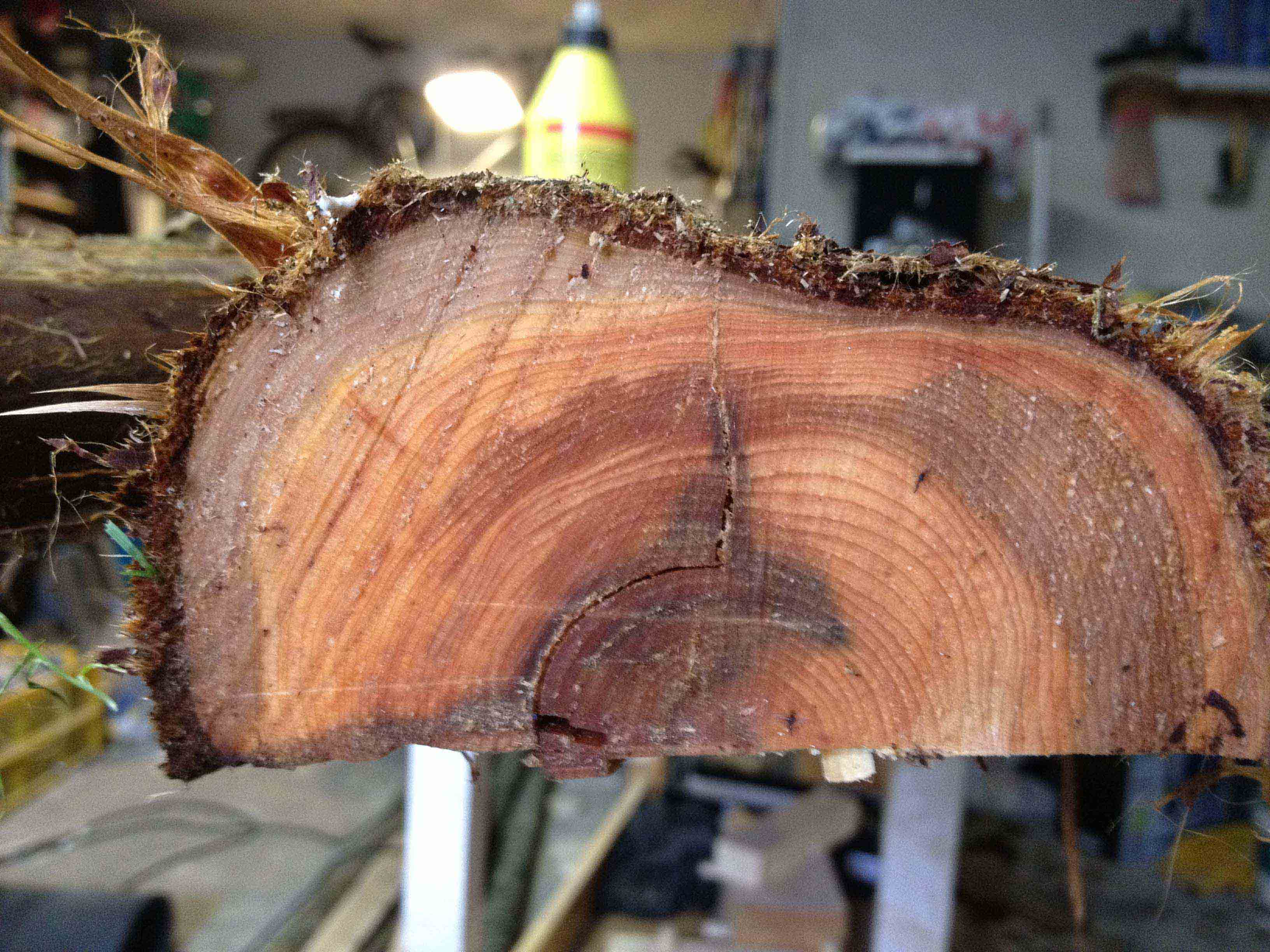 Zu den Jahresringen kann ich nichts sagen, einfach zu undeutlich und schleifen lasse es sich auch nicht. Habe ein Radl abgeschnitten: