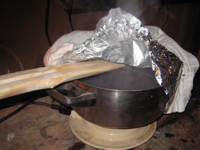 Wenn er in wärmere Gefilde kommt, werde ich den Rohling eher so aufspannen, dass der Reflex verringert wird. So erhalte ich ebenfalls Druck. Denn beim leichten reflex drücken, habe ich leichte Knacksgeräusche gehört. Muss aber nichts tragisches bedeuten.