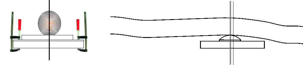 Für alle die besonders krumme Staves haben, würde sich noch so ein aufgeklemmter "Buckel" anbieten. Dadurch kann vermieden werden, daß der Stave hohl liegt, was zu einem Verkanten des Staves und Einhaken des Sägeblatt führen könnte. Gruß